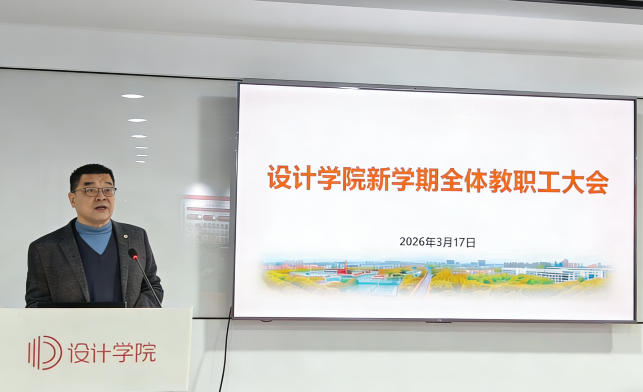 为统一思想,明确目标,扎实推进学院改革发展稳步前行,3月17日中午,设计学院在一楼报告厅召开新学期全体教职工大会。会议由学院党委书记韩晶晶主持。陈江院长首先传达了学校2026年春季读书会精神,介绍了学校“十五五”发展规划有关情况及学院改革发展思路,并就迎接巡视、硕士点及新专业申报、系所改革及实验室调整等工作作出部署。他强调,面对高等教育由“学科导向”向“产业导向...