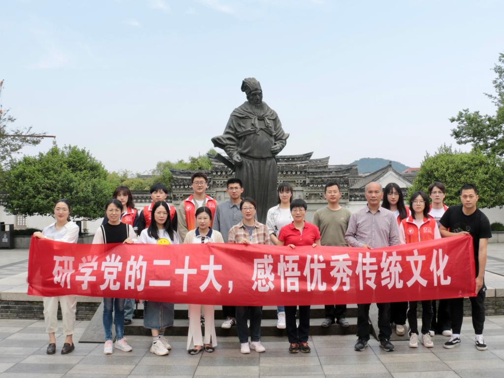习近平总书记指出:“王阳明的心学正是中国传统文化中的精华,是增强中国人文化自信的切入点之一。”为深入开展学习贯彻习近平新时代中国特色社会主义思想主题教育,严格落实“学思想、强党性、重实践、建新功”的总要求,5月14日,设计学院党委组织师生党员赴余姚阳明故里开展主题教育现场研学活动,感悟优秀传统文化,提升党性修养,坚定文化自信,以文化之内力增强党员实干担当。