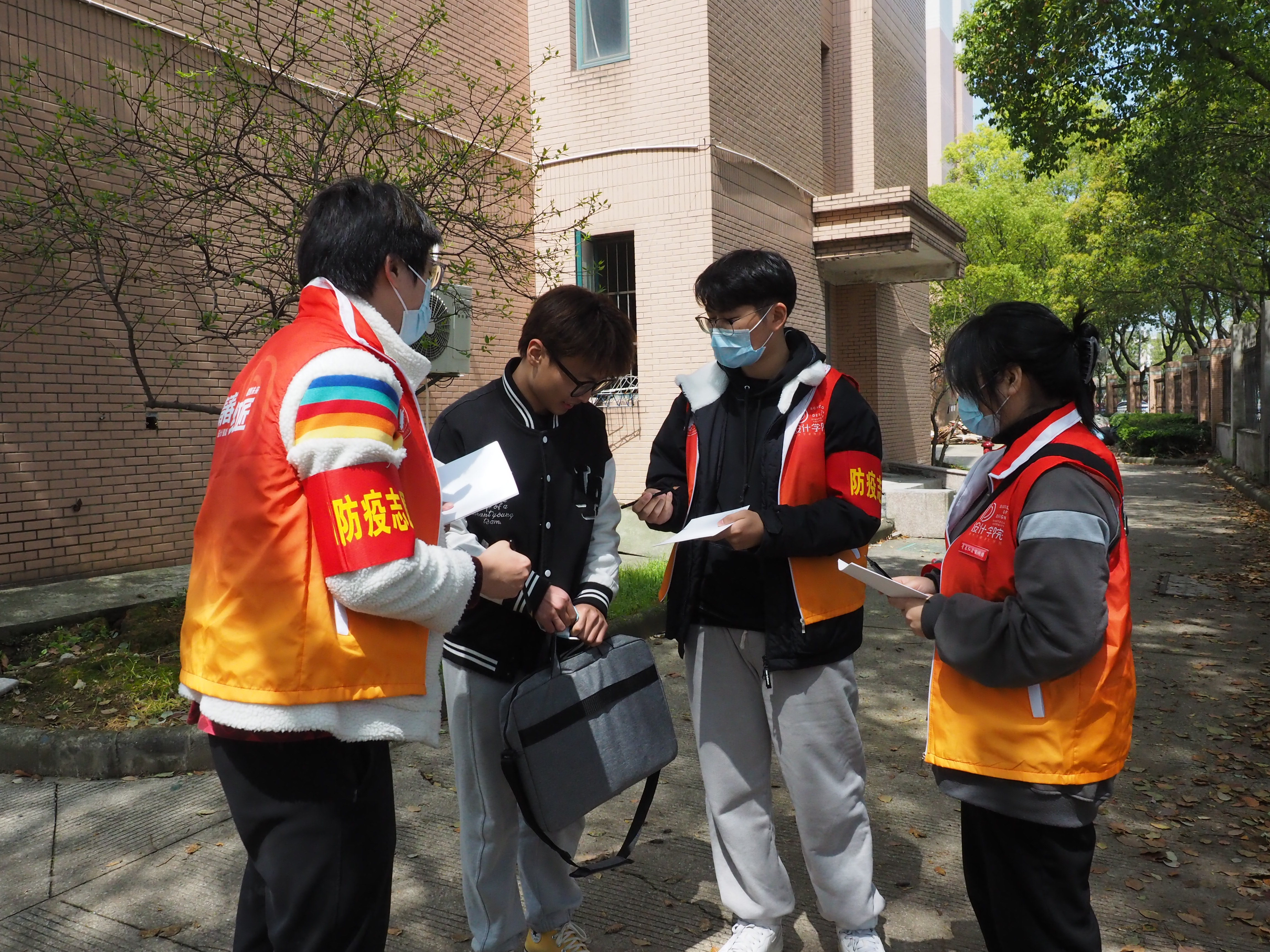 3月23日中午,设计学院“师生党员抗疫志愿先锋队”在西门周边、小北门、30幢垃圾房、东门周边、17幢围栏及26幢围栏开展“让党旗在疫情防控第一线高高飘扬”外卖劝导活动。设计学院党委副书记、纪委书记叶卫树作了动员讲话,金慧燕老师作具体工作布置。教师党员代表王萍、辅导员刘舒与学生党员骨干参加了本次活动。通过参与劝导活动,师生党员们更进一步认识到疫情防控所面临的严峻形势,纷纷表示一定会配合学校相关部门把疫情防控工作抓紧、抓实、抓细,最大程度降低社会面传染源进入校园的风险。