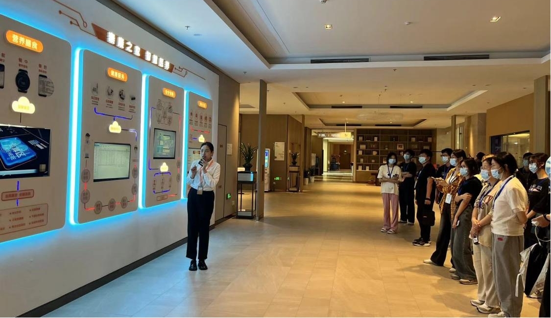 设计学院师生从用户体验与服务设计角度认真考察了养老社区的健康服务系统,包括社区为老年人设计的营养膳食计划、智能用药提醒、健康体征检测、智慧安防系统以及老年居民日常活动安排等,并学习体验了园区内高品质的适老化设计方案。在园区工作人员的热心、细致讲解下,设计学子对当下通过智慧科技手段提升康养护理品质有了感性认知。