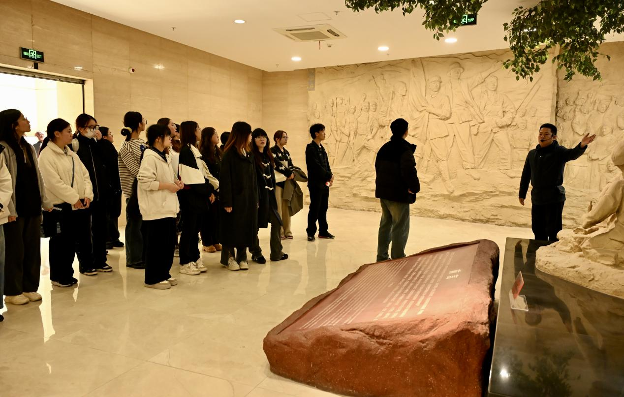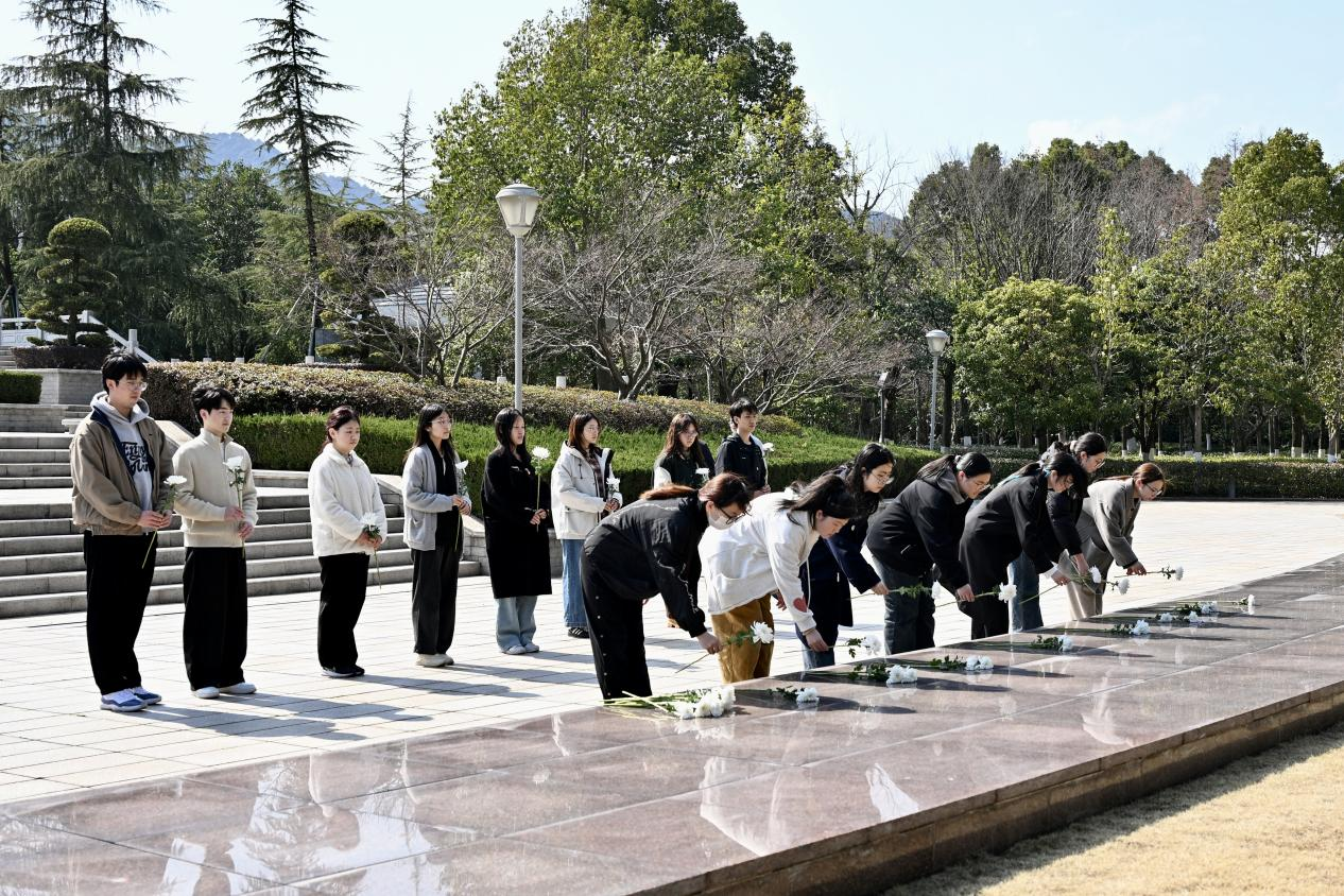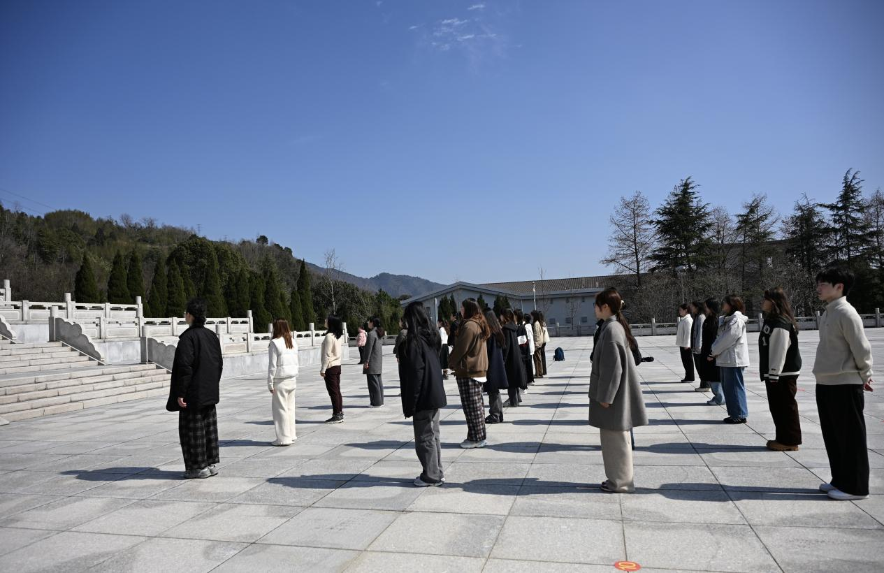 全体师生党员在烈士纪念碑前肃立,齐唱国歌、集体默哀、敬献花圈,铿锵的旋律与无声的追思交织,传递着对革命先烈的深切缅怀。在韩晶晶书记的领誓下,师生党员面向党旗,重温入党誓词,誓言赓续红色血脉。仪式尾声,全体师生缓步绕行纪念碑一周,瞻仰先烈英名,并依次献上手持鲜花,以白菊寄托崇敬之情。