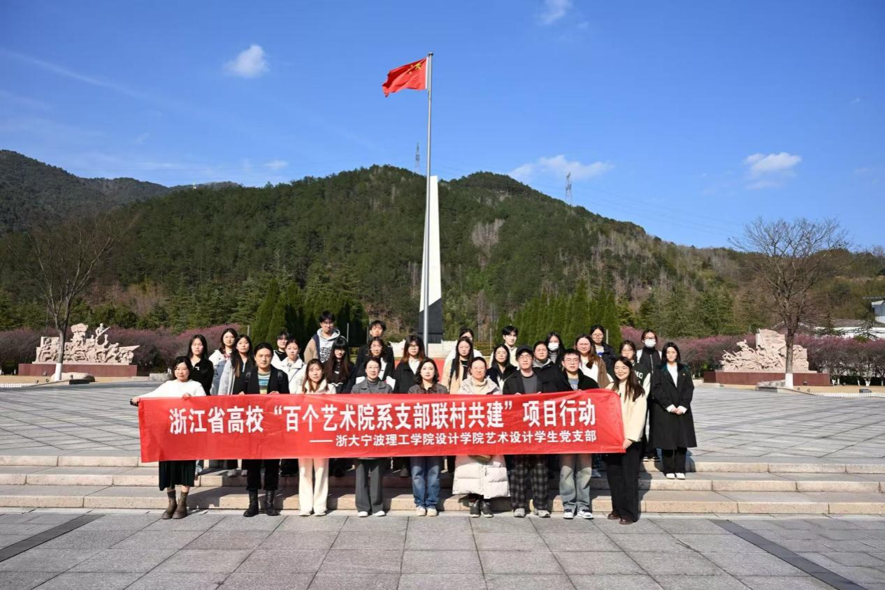 为认真贯彻落实省委教育工委关于“百个艺术院系支部联村共建”推进乡村文化建设工作部署,2025年2月28日下午,设计学院党委书记韩晶晶带领师生党员赴宁波樟村四明山革命烈士陵园开展党建联建活动,陵园服务中心党支部书记、主任陈志斌对设计学院一行的到来表示热烈欢迎。