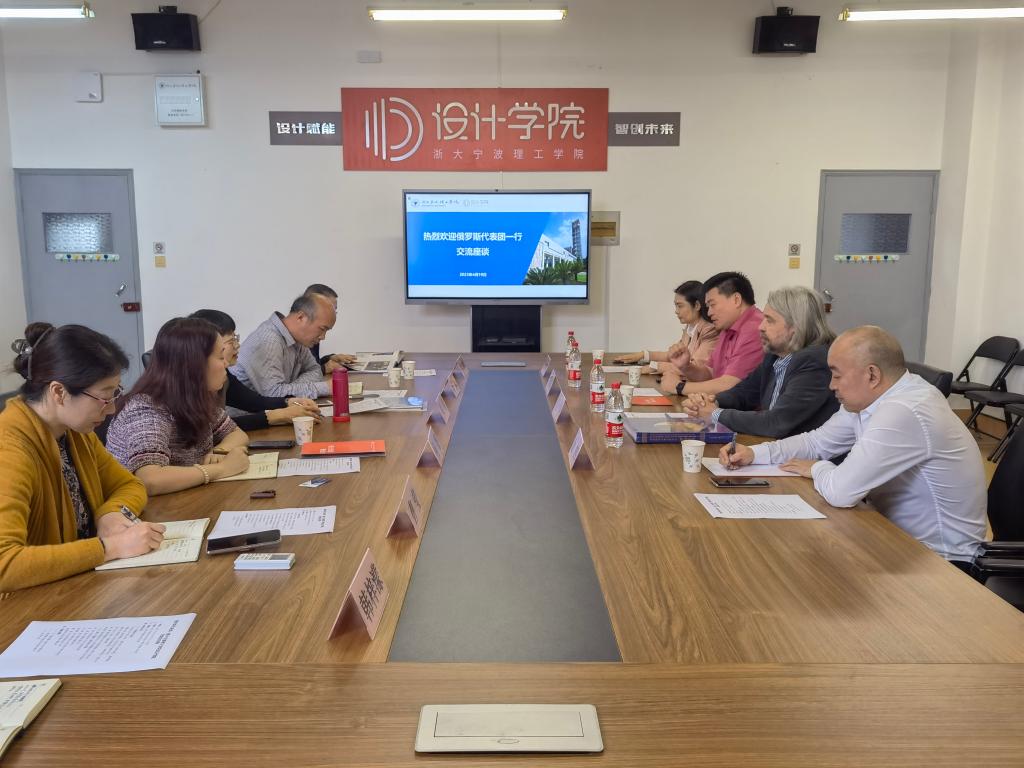 4月19日上午,俄罗斯艺术科学院院士、俄罗斯美协副主席、俄罗斯国立工艺美术大学油画系主任叶弗吉尼亚·罗马申科,俄罗斯艺术科学院荣誉院士、俄罗斯国立工艺美术大学文化中心主任、客座教授郭晓宾,俄罗斯国际文化艺术慈善基金会浙江分会会长俞辉,俄罗斯国际文化艺术慈善基金会浙江分会副会长陈柯妍一行来访设计学院洽谈国际合作。学校国际合作与交流处副主管何睿,设计学院党委书记吴春、党委副书记叶卫树、艺术与科技设计研究所所长由旭声、党政办主任曹莹、外事秘书韩梓濛等参加交流会。会议由吴春主持。