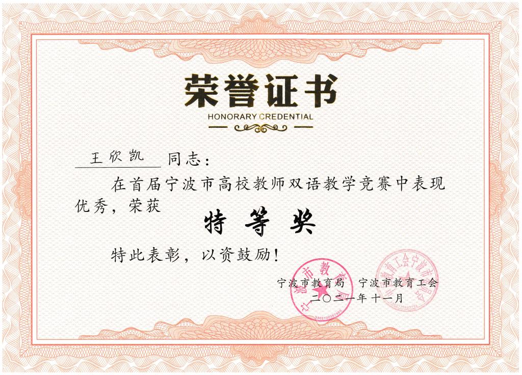 11月19日,由宁波市教育局、宁波市教育工会主办,浙大宁波理工学院承办的首届宁波市高校教师双语教学竞赛圆满落幕。市教育局党委委员胡刚强、市教育工会主席马小平、浙大宁波理工学院党委副书记李凤旺,决赛组委会成员、评审委员会成员、宁波市14所高校领队、21名参赛选手出席表彰会。