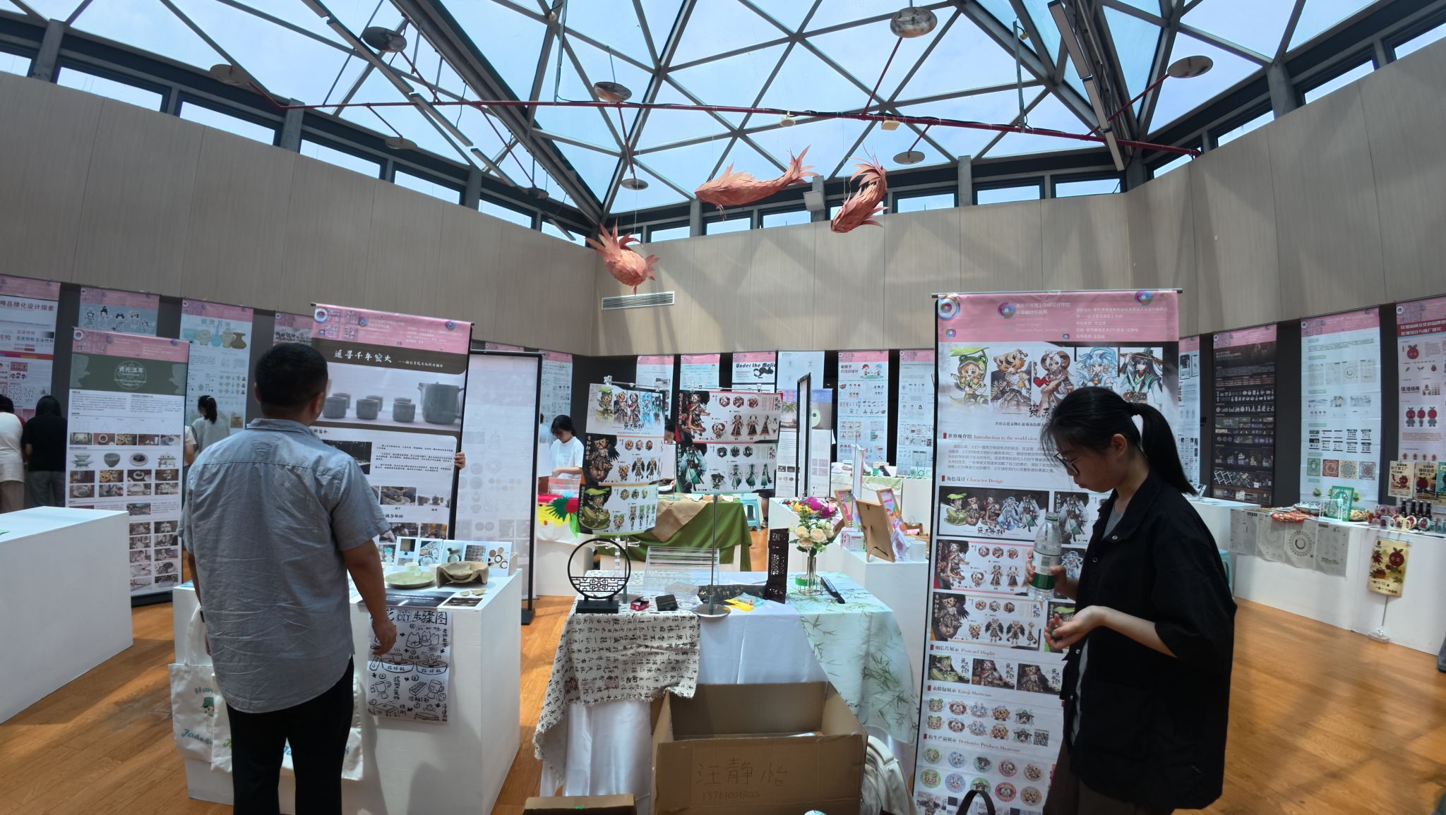 沈昊宇表示,本次毕业设计紧密对接乡村振兴真实需求,形成了"双导师+双场景"特色机制。陈江在参观青瓷文化传承园主展厅展品后感慨,这些带着露珠的作品,正是学校“三全育人”改革的生动注脚。张峰指出,从青瓷釉色分析到杨梅IP开发,每个作品都倾注了师生创意打磨的心血。"这些作品不是闭门造车的学院派设计,而是带着泥土芬芳的乡村振兴方案。"作为此次活动的策展人之一,桂劲松感受尤深。"学生作品让我们看到传统工艺的无限可能!"越窑青瓷非遗传承人、我校设计学院企业导师孙威捧起《青瓷釉色数字色谱》作品赞不绝口。