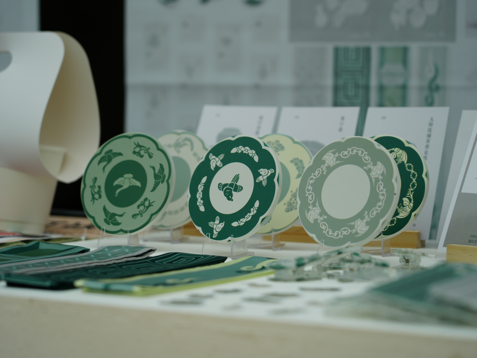 步入展厅,仿佛踏入了一个传统与现代交织的奇幻世界。近40件艺术设计作品,以倡隆村青瓷、杨梅、楝树下艺术村落等在地文化为灵感源泉,涵盖全系列文创产品、数字化应用、纪录片微电影等多个领域。印有青瓷卡通人物“瓷嘟嘟”的异形抱枕,软萌的形象与青瓷元素破次元融合;刻着卡通杨梅形象的钥匙扣,小巧精致又活泼可爱招人喜欢;还有以楝树和楝树纹路为设计灵感的楝树下艺术村落品牌视觉形象设计,让游客感受独属网红村落的乡村美景。这些作品风格新颖独特,彻底打破了传统与现代的次元壁,让古老的乡村文化焕发出全新的生机。