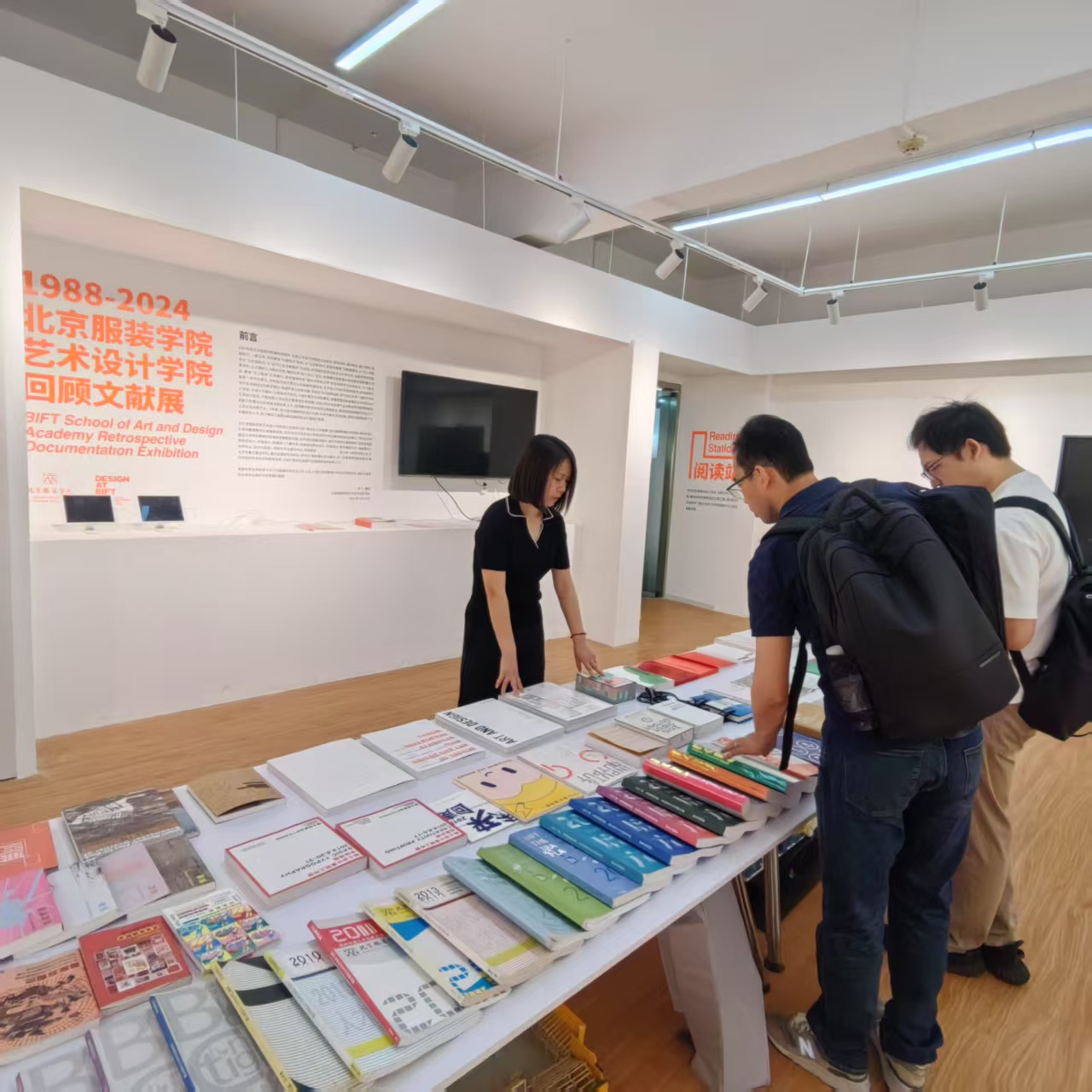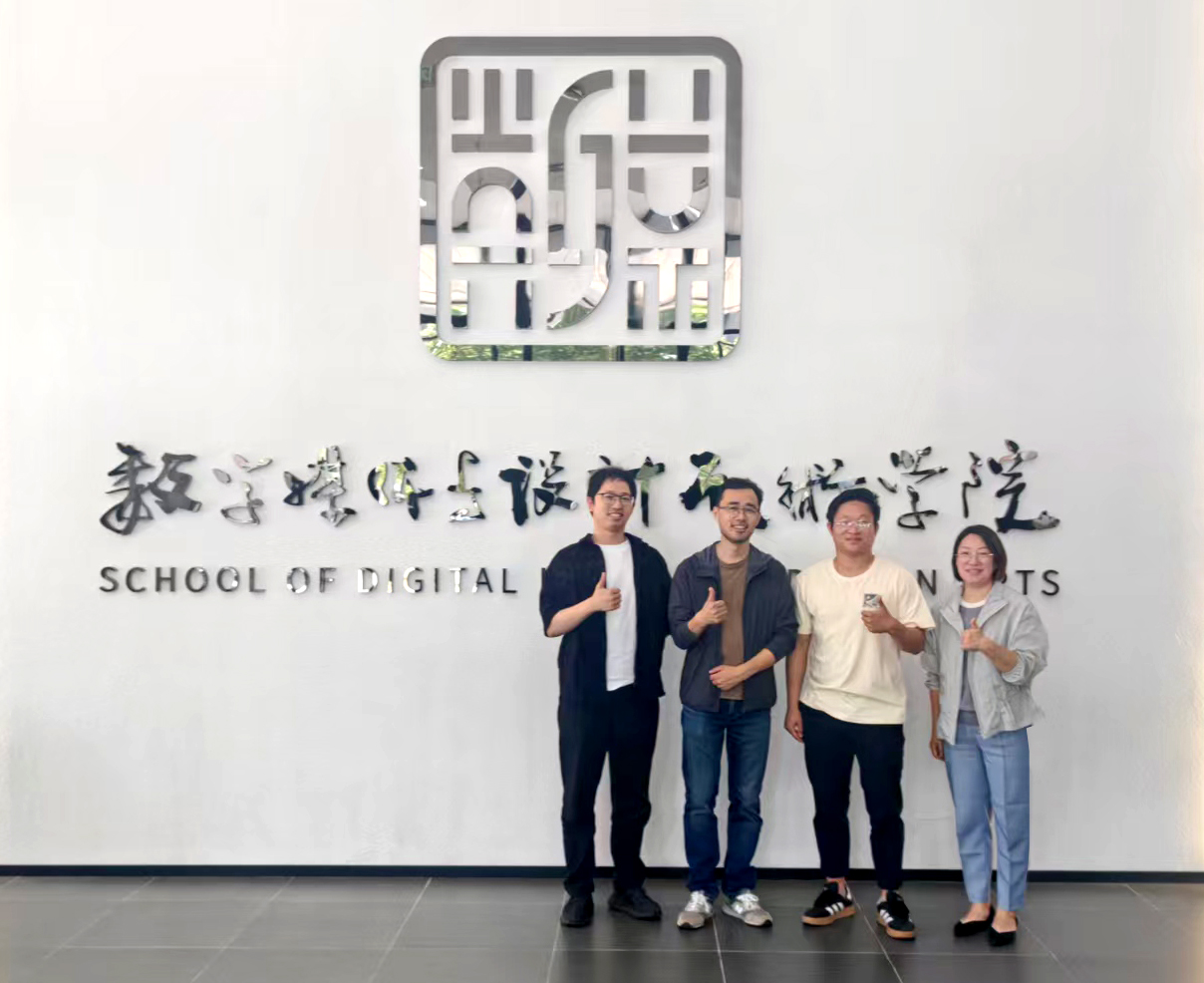 调研团在北京工商大学与设计与艺术学院副院长吴思淼、数字媒体艺术系主任陈思等进行了座谈交流,重点围绕课程体系构建、师资队伍建设、校企合作等方面展开讨论。北工商作为应用型高校,注重强化实践教学环节,提升学生综合能力,在校企合作中积累了丰富经验。调研团还参观了北工商毕业设计展览和实验室,实地考察了学生创新设计成果和教学科研条件,对该校"以赛促教、以赛促学"的实践教学模式有了更直观的认识。