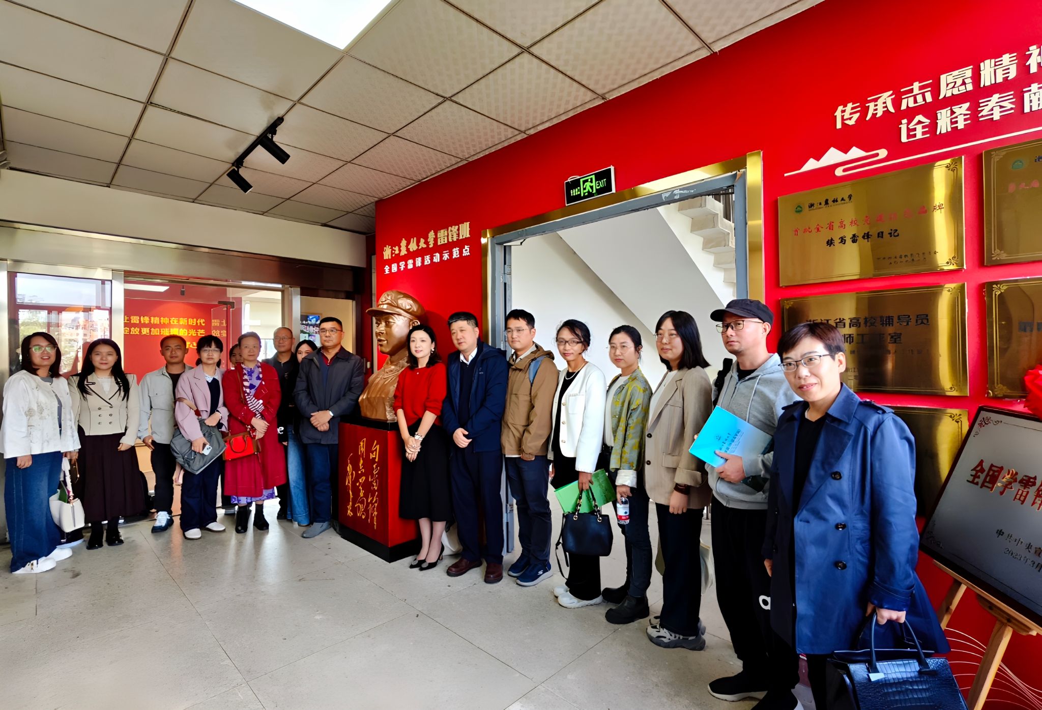 调研团还参观了浙江农林大学“雷锋班”建设成果,2023年,作为唯一高校大学生学雷锋组织,浙江农林大学“雷锋班”被中宣部命名为第八批全国学雷锋活动示范点,通过六大活动体系建设,续写雷锋日记,打造活动品牌。