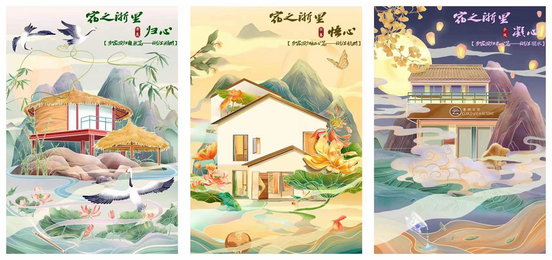 在主题为“浙里乡宿”的主赛道,海报类别中,由施奕心、沈雨晨、林稞萌同学完成的作品《归心· 悟心·凝心》(指导老师:史仲一、励宇辉)荣获一等奖。微电影类别中,由范若萱、洪思航、李玟、罗程璠、楼紫璇同学完成的作品《我和我的家乡》(指导老师:张莹、励宇辉)荣获二等奖;由来佳樱、何诗琦、金宣汝、蔡蕙同学完成的作品《山之舍 隐之宿》(指导老师:诸葛雯静、江彬)荣获二等奖;由邵冰欣、吴雨潼、杨小燕、缪雨未同学完成的作品《牧心漫记》(指导老师:诸葛雯静、江彬)荣获三等奖;由施媛媛、应许乐、周林丹、施莉婷同学完成的作品《初见山海》(指导老师:诸葛雯静、江彬)荣获三等奖。