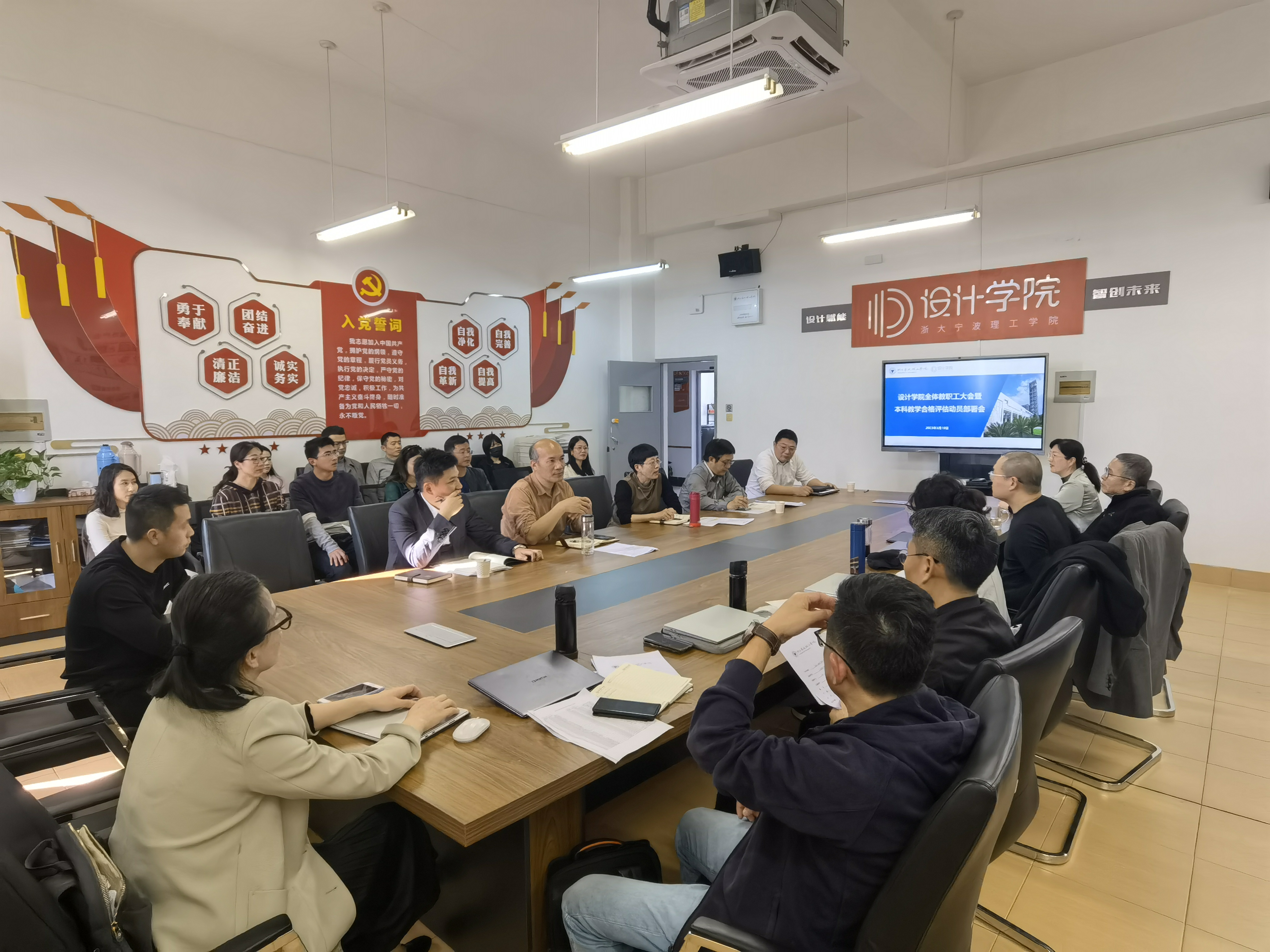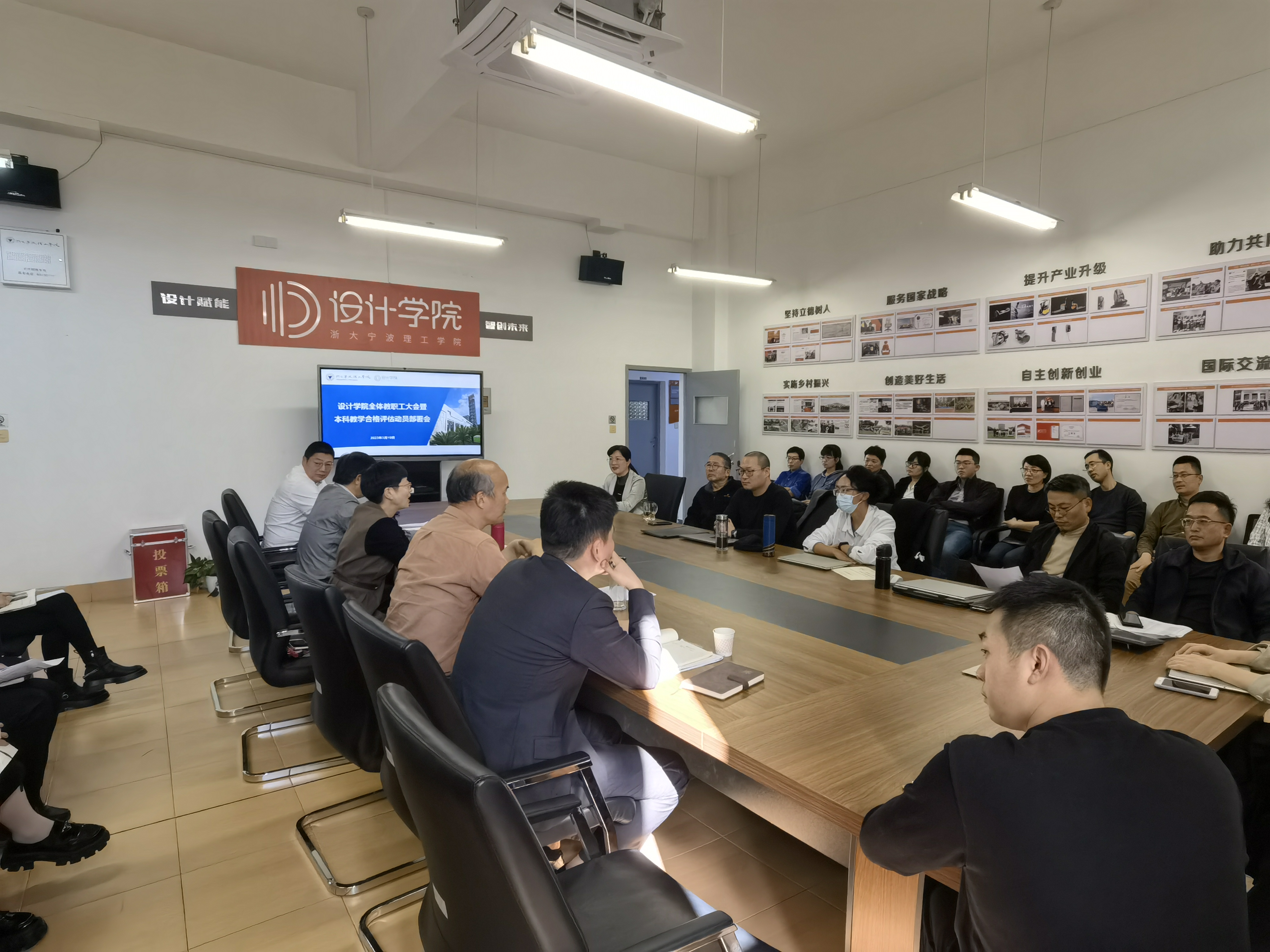 新学期,新目标,新气象。为扎实推进硕士点培育、学科专业建设、本科教学工作合格评估等重点工作,动员广大教职工以饱满的热情、昂扬的姿态投入新学期,加快学院发展步伐,3月10日下午,设计学院在SE306会议室召开新学期全体教职工大会暨本科教学工作合格评估动员部署会。会议由学院党委书记吴春主持。