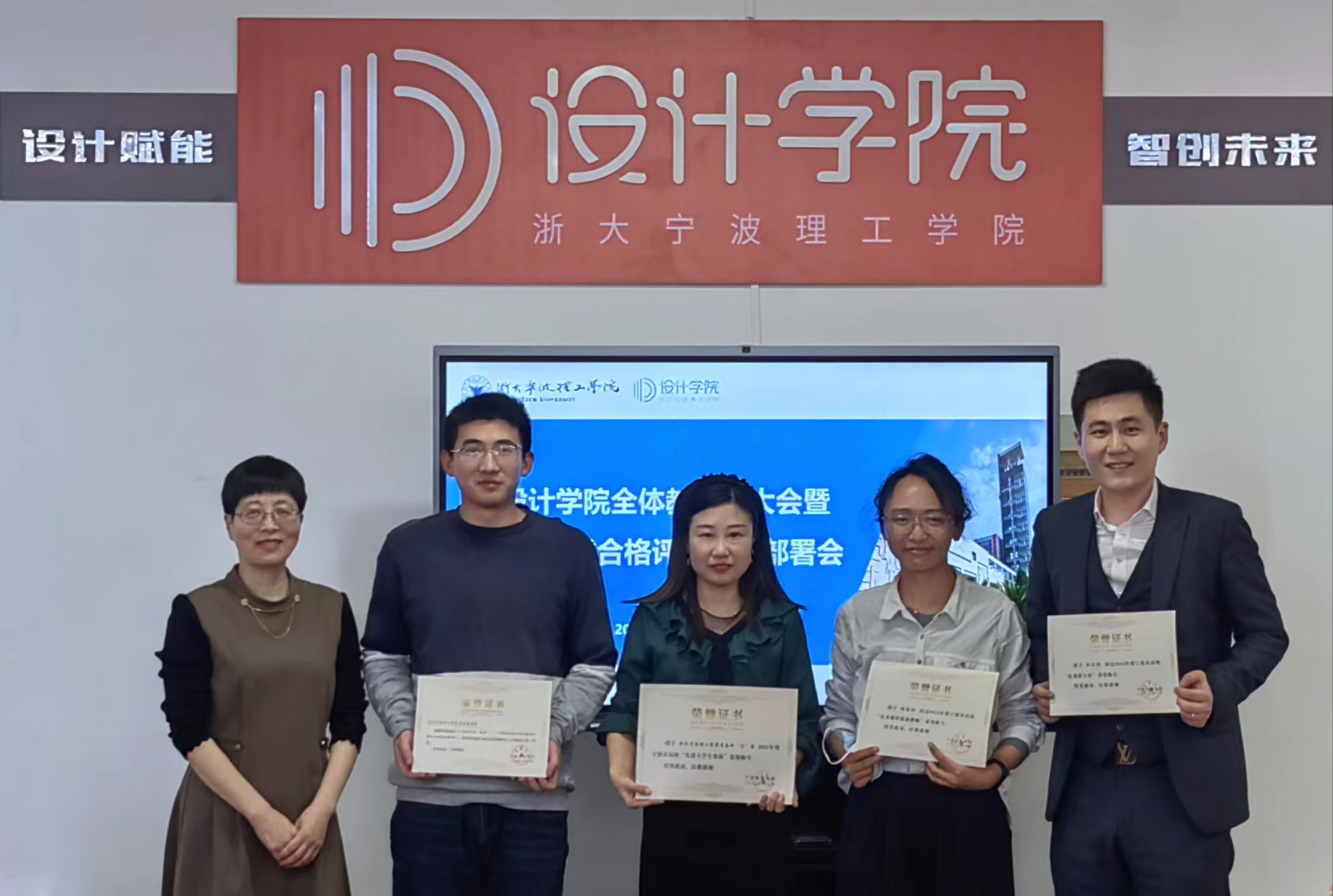 会上,吴春向获奖教师颁发了宁波市思政奖项荣誉证书,并介绍了学院新教工。新学期,设计学院全体教职工将以党的二十大精神为指导,牢记立德树人使命,重点围绕本科教学工作合格评估、硕士点培育、重点学科和新专业建设,以昂扬奋斗的姿态,乘势而上开新局, 凝心聚力谱新篇。
