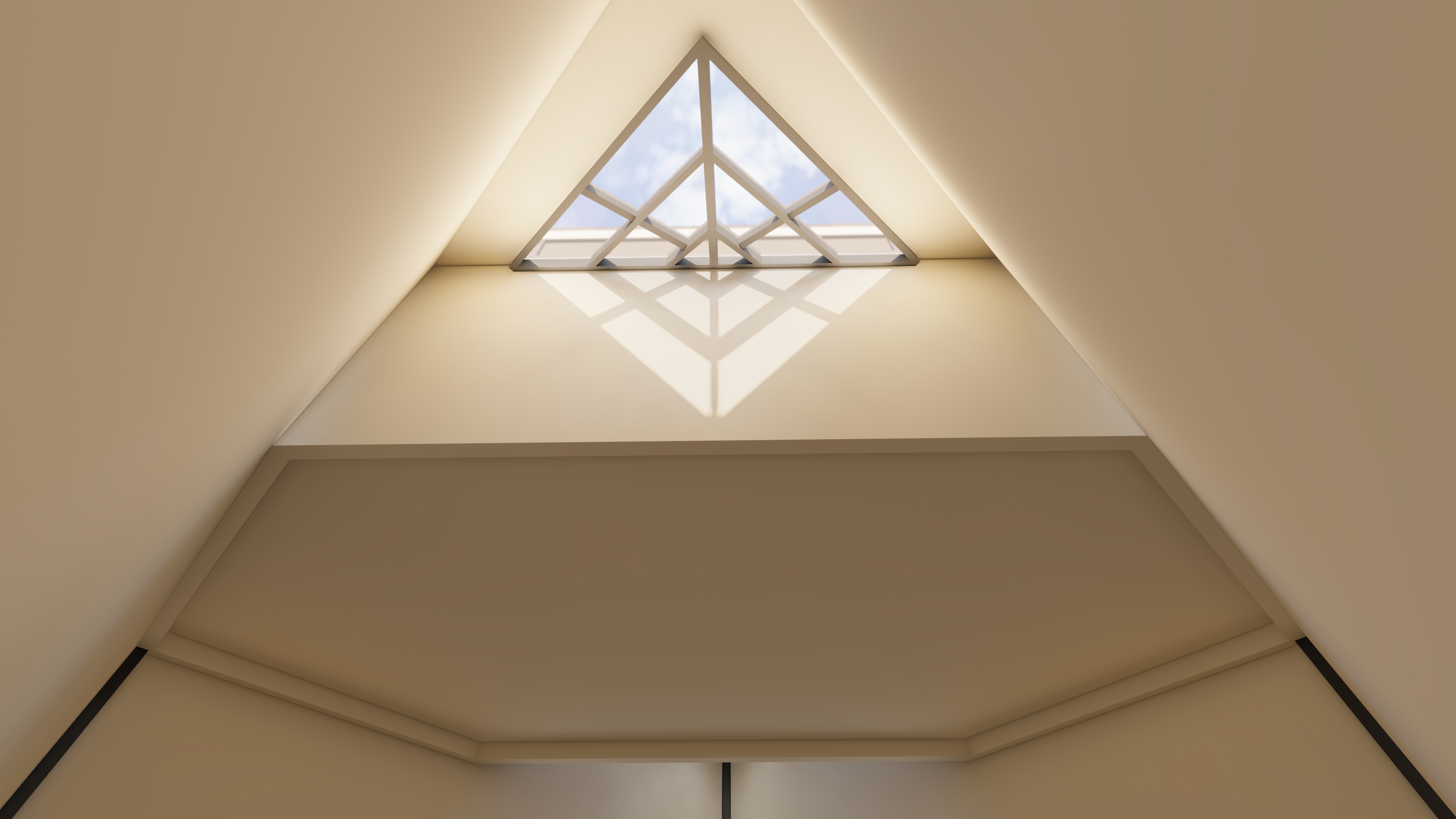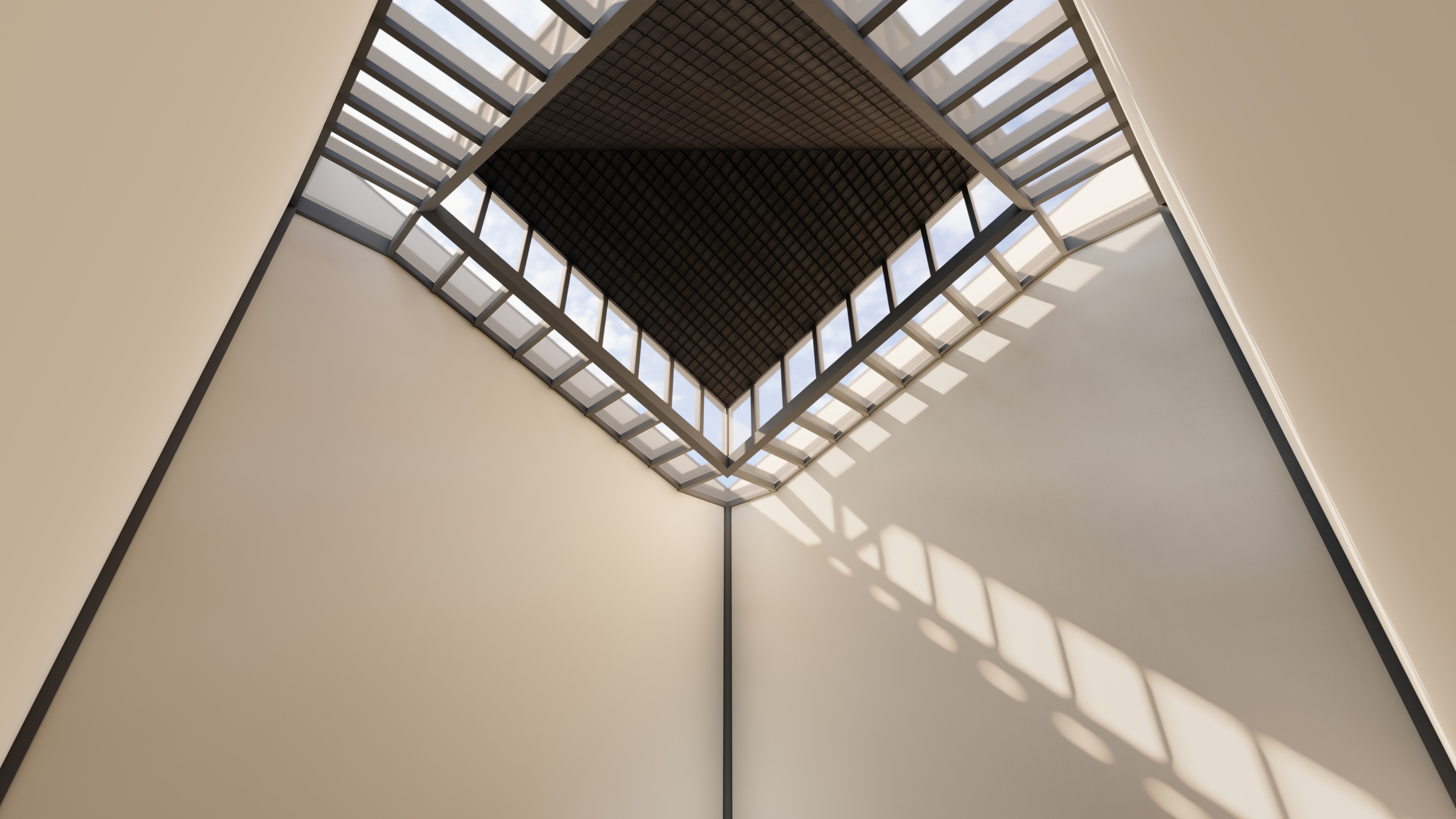 由于该博物馆项目是一个大规模文旅项目规划中的一个部分,通过已有的总平规划来看,在博物馆前端已经有设置一个入口广场,以入口广场的角度规定场地中轴线的角度,则可以对建筑的排布角度进行初步的确定。又在设置消防环道时舍弃了一切突出的犄角。把建筑规划在了一个相对规整的场地中,用长长的水面连廊作为入口的前导空间,增强建筑入口的引导效果。主体建筑的展览工具基本把1层占满。员工工作的空间,也被转移到了2层。在大体做好了场地规划后,如何确定建筑形体便是重中之重,建筑单体基本型来源于屋脊旋转45度的双坡屋顶,形象更加独特,现代。