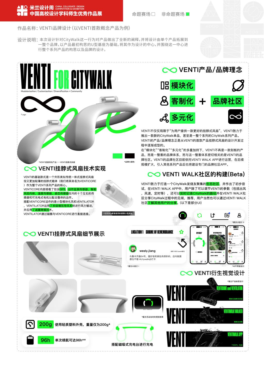 本科及研究生组作品中,李桐和单简同学在杨顺立、张峰两位老师的指导下共同创作的《VENTI品牌设计(以VENTI首款概念产品为例)》荣获国家二等奖,这部作品充分展示了他们对品牌设计与产品创新的深刻理解。由赵晨、江彬和张莹老师指导,周鑫磊同学创作的《你快乐,所以我快乐》和《风将哪里去,向左亦向右》分别获得了国家三等奖,展现了他在设计领域的多元化才能和创新能力。此外,邬欣彤同学的作品《时之痕》,施晓琳和曹宇静同学的作品《影视之门戏剧之乡》,王耿婕、唐涵和张璐璐同学的作品《零碳未来》,李木子和薛芷祎同学的作品《WarmMate婴儿床取暖器》均获得了省级三等奖,这些作品不仅体现了浙大宁理学子对设计的热情与追求,也展示了他们在设计领域的独特见解和创新思维。