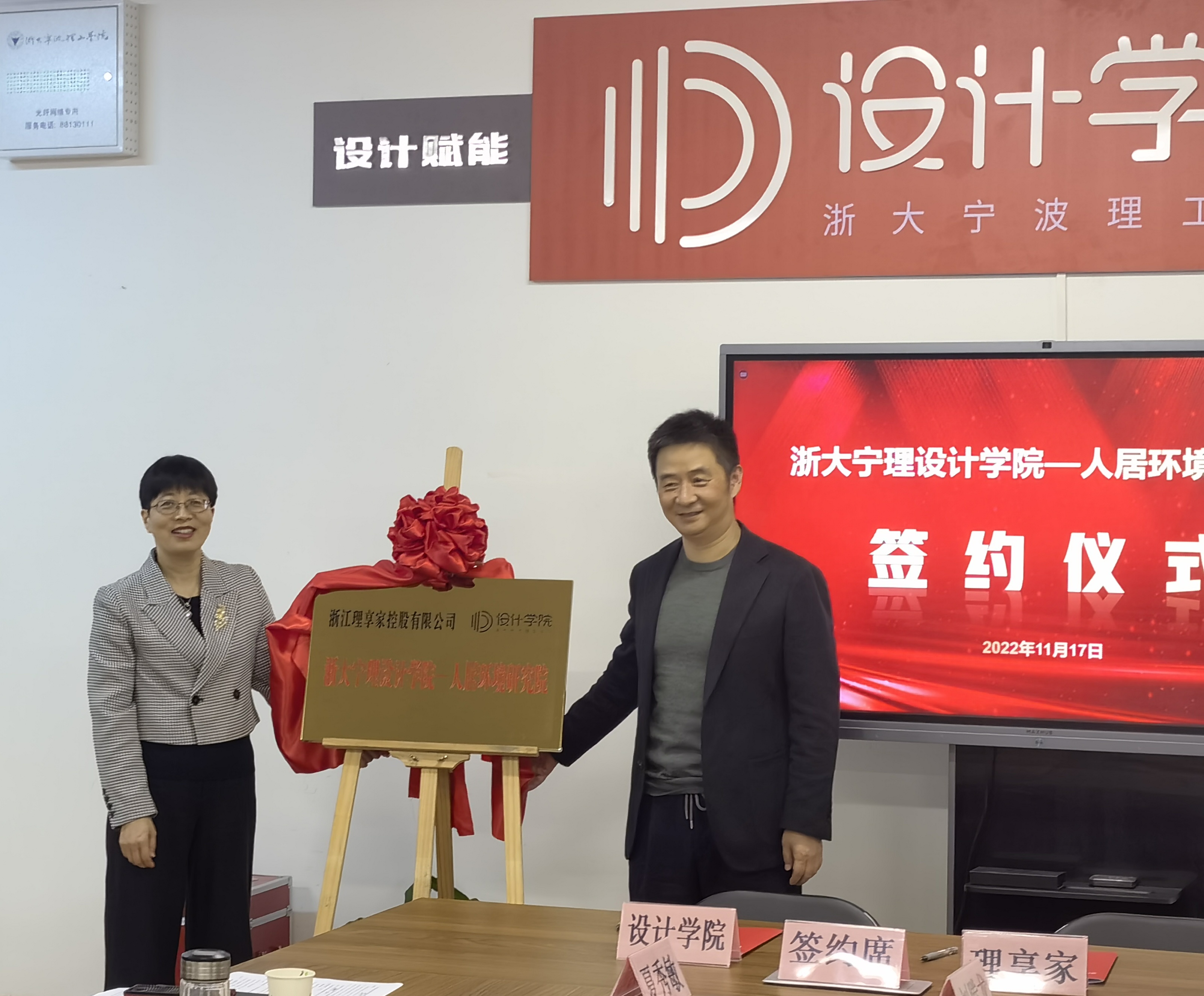 签约仪式上,校企双方签订了共建“浙大宁理设计学院—人居环境研究院”合作协议,并为研究院揭牌。此外,为了丰富双方合作内容,推进校企协同育人,还签约成立了大学生实习(实践)基地,并举行了基地授牌仪式。
