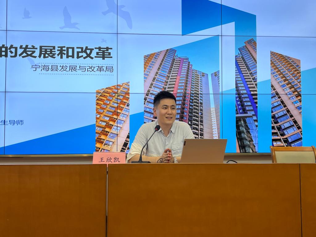 近日,宁波市宁海县发展和改革局主办了“发改讲堂”系列培训活动第一期,旨在以尚学之风和奋进之志推动宁海县经济社会高质量发展。我校设计学院王欣凯副教授应邀为培训活动做了题为“规划引领下的发展和改革”专题讲座。来自宁海县发改局、社会建设委员会、县重点工程管理中心等部门50余名领导干部参加了培训活动。