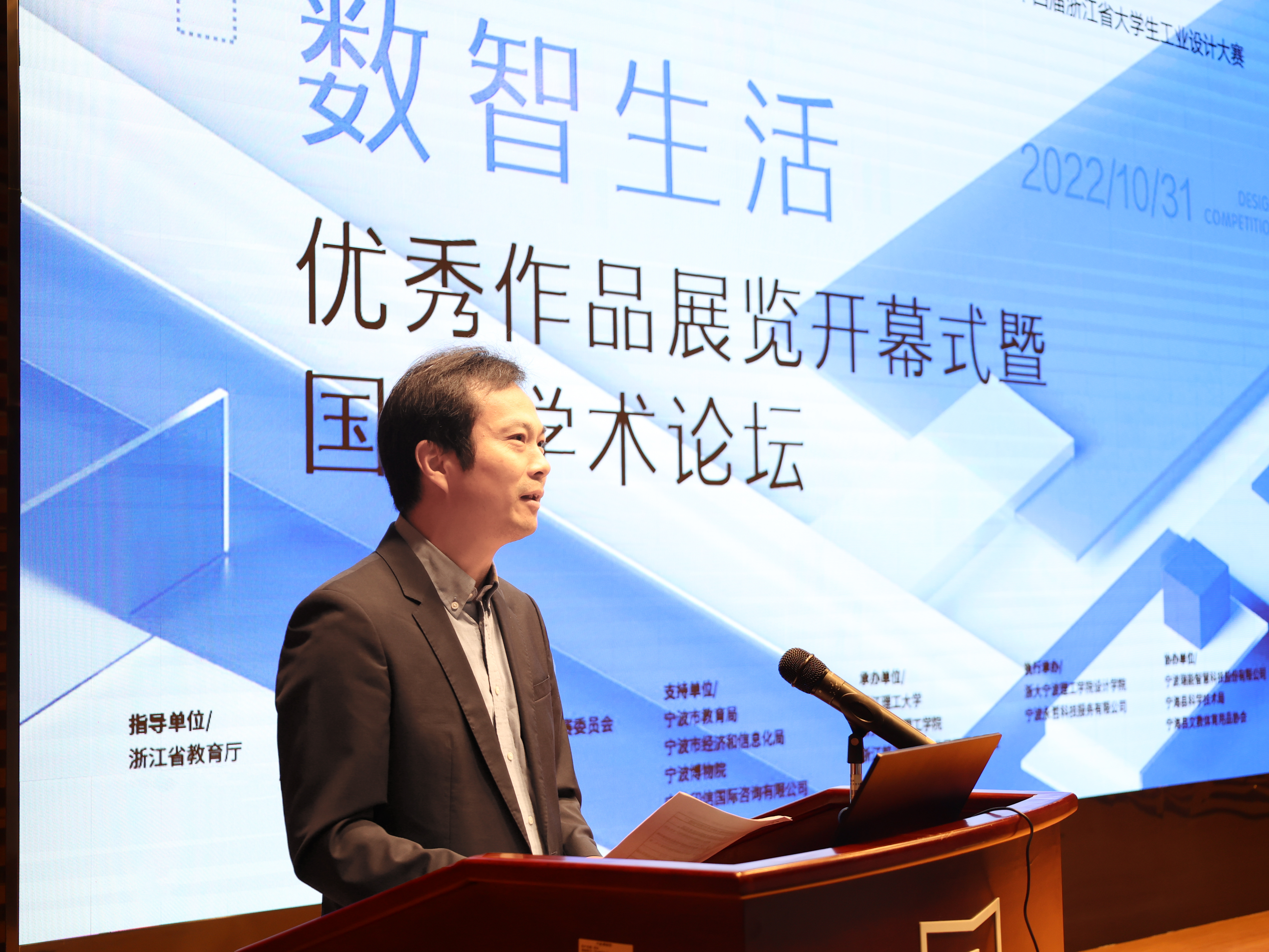 10月31日上午,由浙大宁波理工学院承办的2022“前洋杯”第十四届浙江省大学生工业设计竞赛的华彩篇章——“数智生活”优秀作品展览开幕式暨国际学术论坛,在别具一格的宁波博物院隆重举行。浙大宁波理工学院党委书记胡征宇致辞并宣布展览开幕。省、市、区工业设计领域主管部门、浙江省工业设计协会、浙江前洋经济开发区管理委员会相关领导以及高校专家、企业家出席开幕式。活动由浙大宁波理工学院设计学院院长罗仕鉴主持,并同步线上直播。