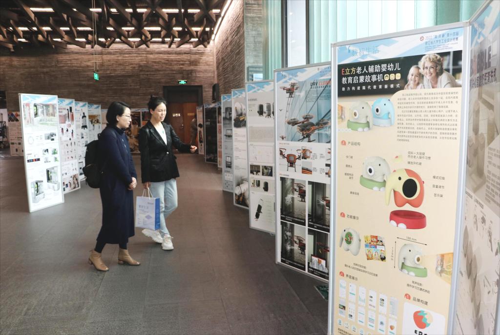 开幕式公布了第十四届浙江省大学生工业设计竞赛主题赛道和产业赛道获奖名单,邀请浙江省经济和信息化厅生产服务业处一级调研员黄哲明宣布主题赛道本科组和高职组一等奖名单,邀请宁波市经济和信息化局创新发展与制造服务业处处长王青燕宣布“宁海文具”产业赛道一等奖名单,邀请宁波瑞能科技股份有限公司总经理王蓉萍宣布“宁波家电”产业赛道一等奖名单。大赛优秀作品展览将在宁波博物院面向全市市民持续展出。本届浙江省大学生工业设计竞赛作品紧密围绕国家创新驱动发展战略,紧跟时代发展脉搏,立足区域产业特色,以“数智生活”为主题,以企业需求为导向,以“设计+产业”创新赛道模式,在主题赛道之外,设立“宁波家电”和“宁海文具”两个产业赛道,成果丰硕。本次参展的120余件作品,从功能创新性、市场性、可行性以及完整性等维度,充分展示了我省工业设计专业大学生的创新意识与专业水平,是我省工业设计教育与产业融合的生动实践。
