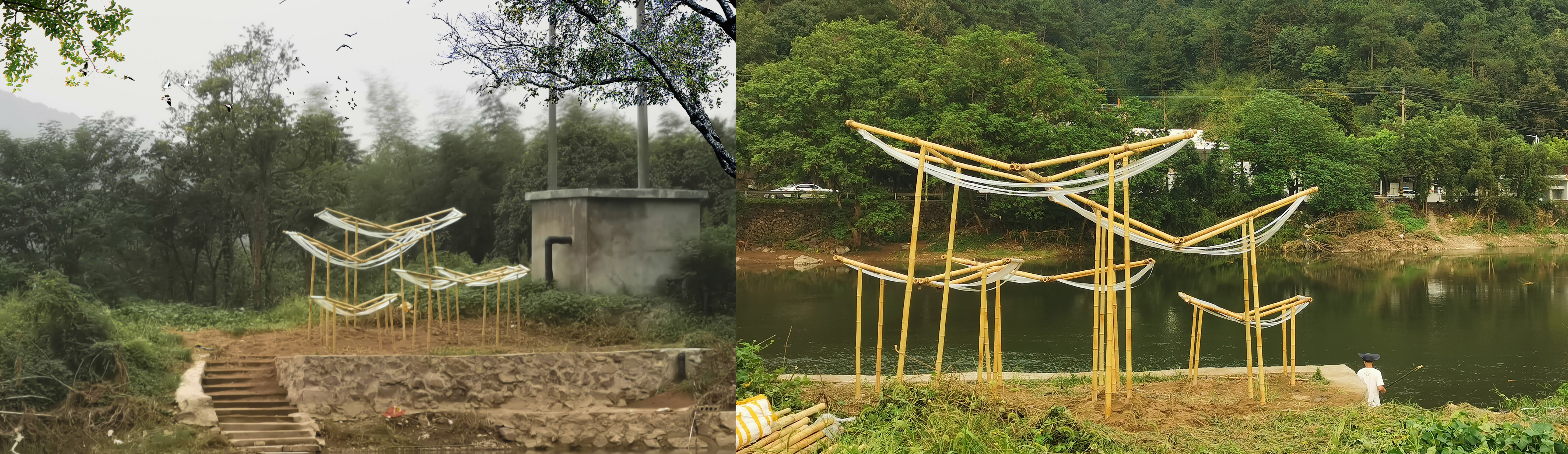 2021年9月1日,浙大宁理工学院设计学院建筑学师生与海曙区章水镇人民政府、章水镇贝母园合作举办了青年学子助力“艺术点亮乡村”活动。活动为期十天,来自浙大宁波理工学院设计学院建筑学专业181班的全体同学,依托建筑学暑期搭建课程,为贝母园设计并搭建了三处景观小品。面对初秋酷暑、阴晴不定,同学们发扬“不怕苦、不怕累”的精神,相互协作,克服一个又一个从设计到现场施工的困难,按时完成所有搭建工作。青年学子凭着对乡村建设的满腔热情,为当地乡村美化贡献出了自己的一份力量。由竹、木搭建的景观小品矗立在樟溪河畔、贝母田间,为乡村田园风景增添了独特风采,充分彰显了“艺术点亮乡村”的主题。