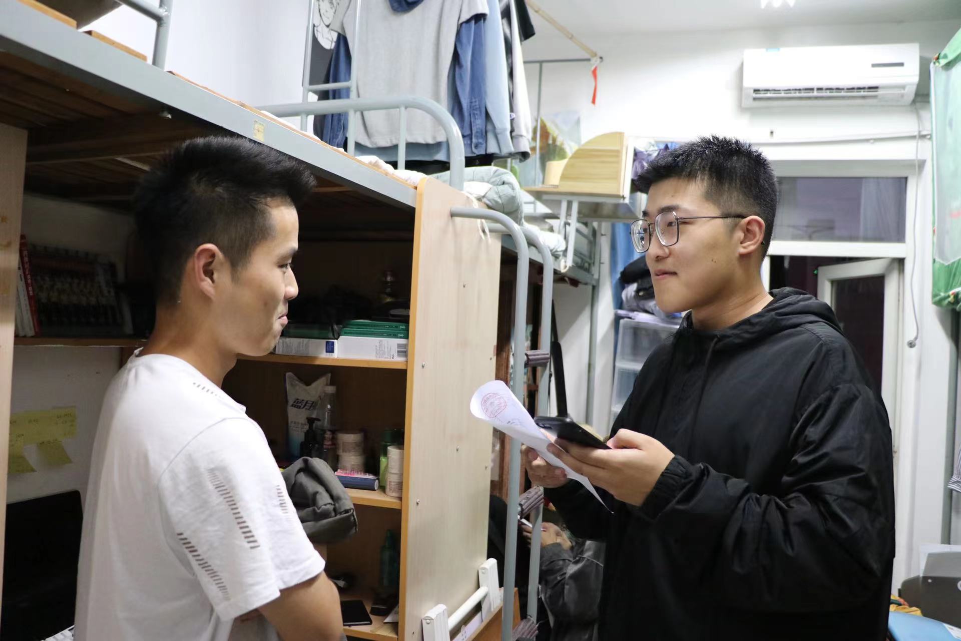 “我为同学办实事,寝室卫生大检查;安全意识心中记,安全卫士我先行”,11月1日下午,设计学院第15期发展对象集体下寝室检查卫生情况及排查安全隐患。