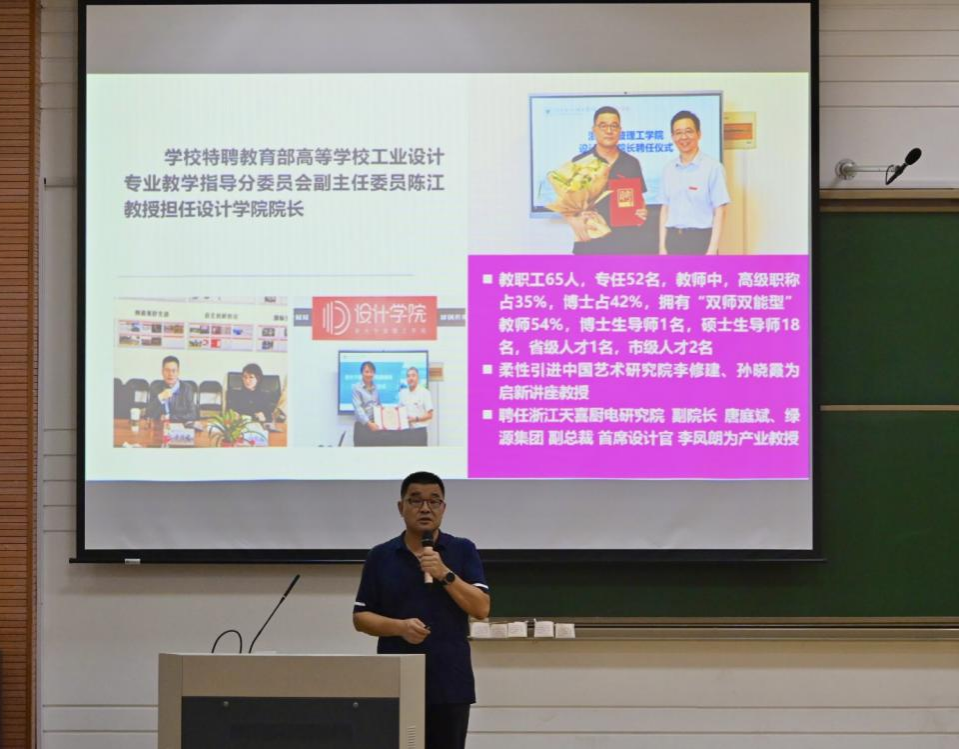 陈江围绕学院发展历程、学科布局、师资力量、国际合作及科研成果展开详细介绍,帮助新生全面掌握学院整体情况、明晰学科优势,为后续学业规划与职业发展筑牢基础。他勉励全体新生,以“高山仰止,景行行止,虽不能至,然心向往之”的追求,在设计领域不断探索、精进。