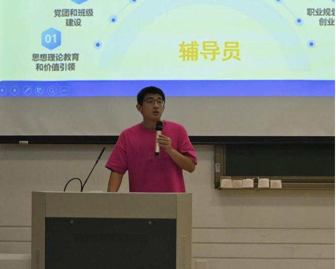 谷石玫解读学籍管理实施细则,明确学业要求与管理规范,帮助新生树立规则意识;周鑫磊围绕学生管理规章制度、行为规范及奖惩机制展开讲解,通过结合典型案例拆解条款细则,让在场学生清晰知晓校园生活中的行为边界与权利义务,为后续规范自身言行、融入校园秩序奠定基础。