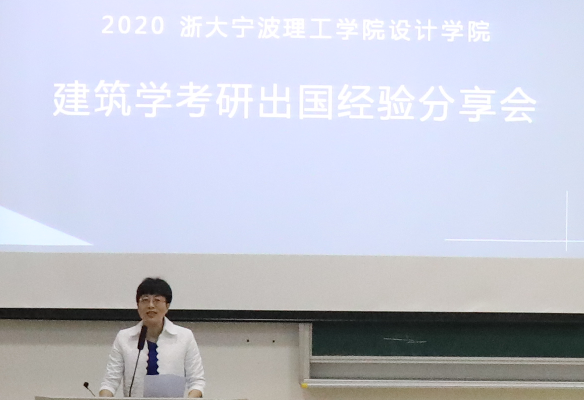 学院院长助理夏秀敏老师介绍了今年建筑学专业毕业生出国考研的基本情况,12位(含5位2019届学生)建筑学子考取了浙江大学、南京大学等国内知名建筑院校研究生,8位同学收到了英国AA、曼彻斯特大学等全球知名建筑院校的offer,建筑学58名应届生中升学深造人数达15人,极大鼓舞了同学们的考研出国热情。夏老师表示,希望毕业生们除做好经验输出,还要将“老带新”、“传帮带”的精神传承下去。