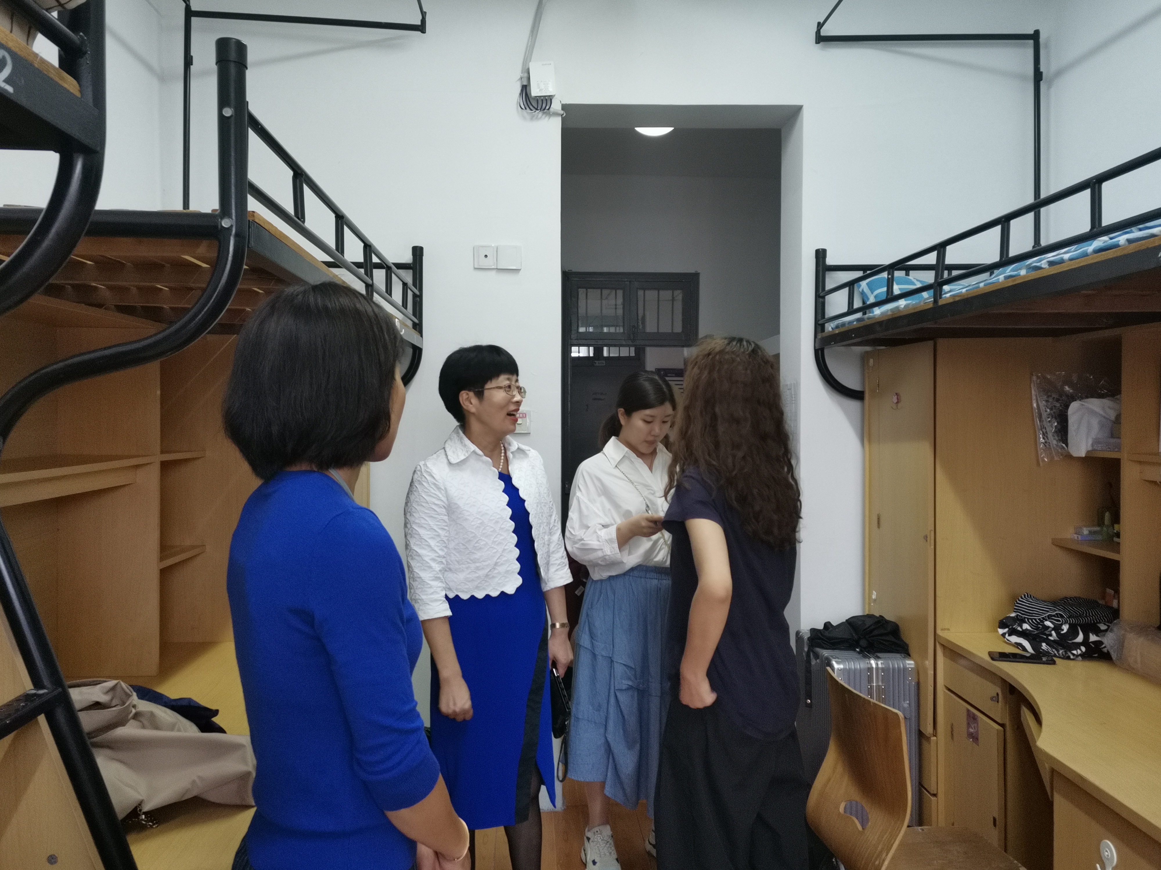 领导和老师们走访新生寝室,很好的拉近了老师和新同学之间的距离,调整了同学们的心理状态,相信设计学院2020级新同学能够很好的融入到设计大家庭中。