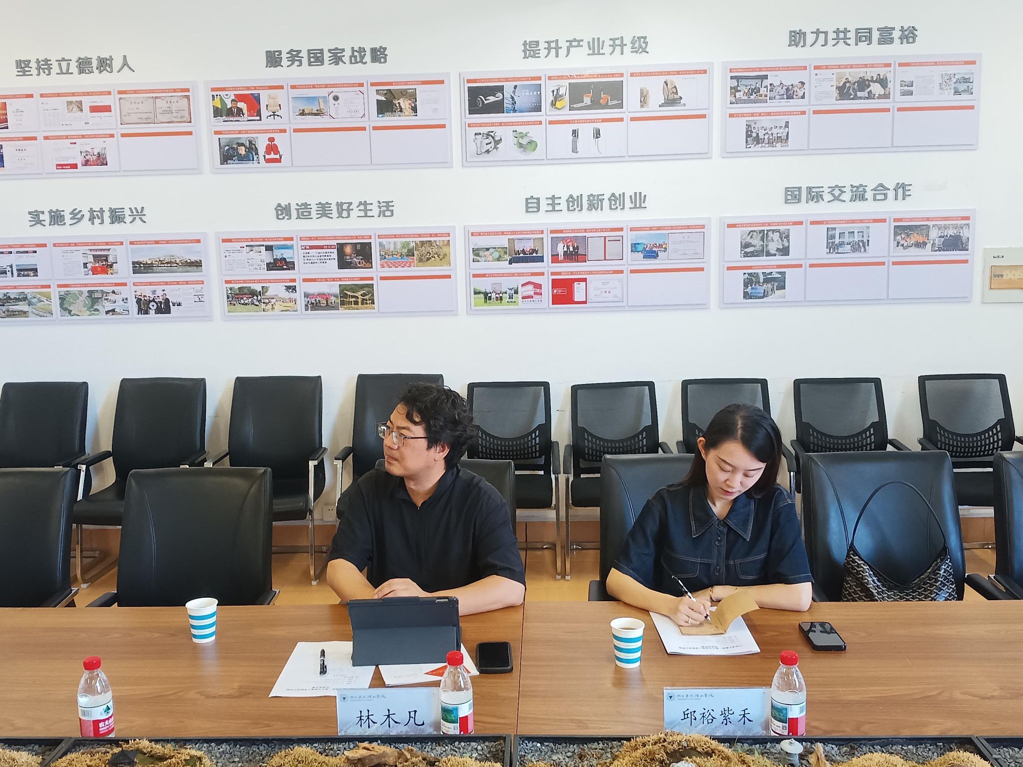 韩晶晶首先对林木凡一行来访表示热烈欢迎,希望双方以此次交流为契机,开启未来长远合作。她指出,双方可以结合各自优势,从合作打造作品、举办竞赛等一项项具体的工作开始,逐步探索扩大合作领域。王祖耀介绍了设计学院基本情况,展示了学院开展校企合作的成功案例和相关成果。励宇辉就设计学院与宁波演艺集团合作的方向提出设想,指出双方可在合作研究、产业基地建设、竞赛组织、党建联建以及乡村振兴等领域开展合作。