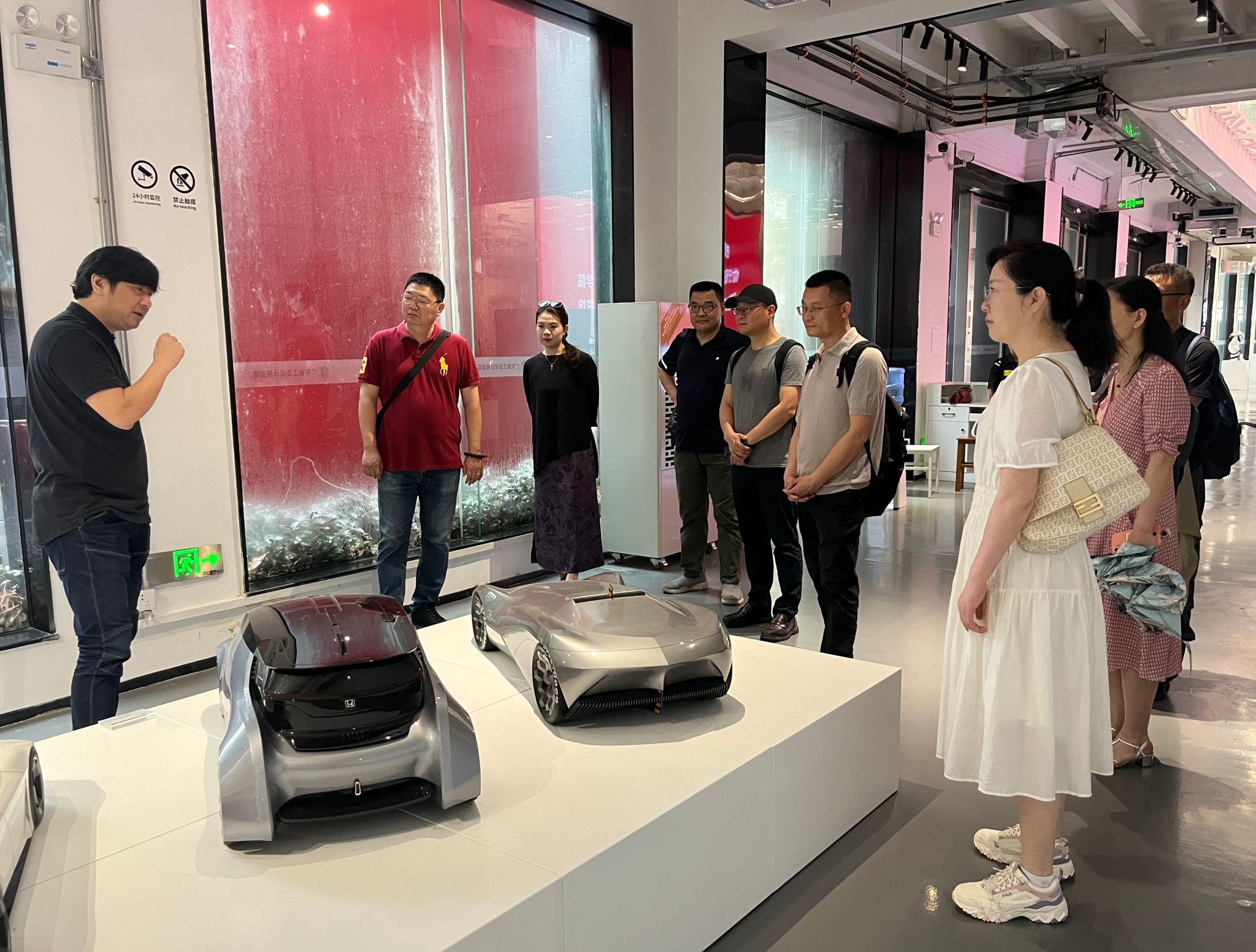 在湖南大学设计艺术学院,调研团实地考察了湖南省岳麓山工业设计创新中心麓山实验室、工业设计发源地四合院、湖南省工业设计协会、文化科技融合战略研究室等,深入了解了设计艺术学院的历史沿革、重要荣誉、教研教改、科学研究、社会服务等情况,详细参观了智能人因设计、数字文化创新、智慧健康、数据智能与服务设计、可持续与生态设计、文化科技融合、智能产品与装备、智慧出行等领域的最新设计成果,为我院深化教学改革、凝练科研方向提供了宝贵经验和重要启发。
