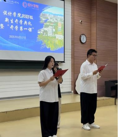 此次开学典礼,情境朗诵与《铭记》歌唱作为特别环节,铿锵语句传递着对设计梦想的憧憬,悠扬歌声饱含青春活力,为这场充满期许的开学仪式增添了独特温度,也为2025 级新生开启大学生活奠定了坚实而温暖的基础。未来,设计学院将持续整合优质教学资源、搭建多元成长平台,培育新生创新思维、助力实现创意梦想,让新生在大学时光中提升专业素养、展现青春风采,以设计之力为文化强国建设贡献青春力量。