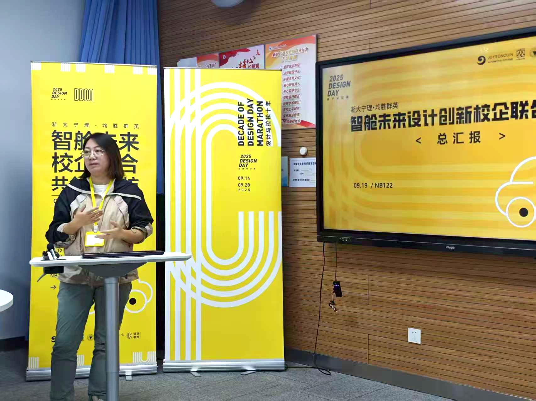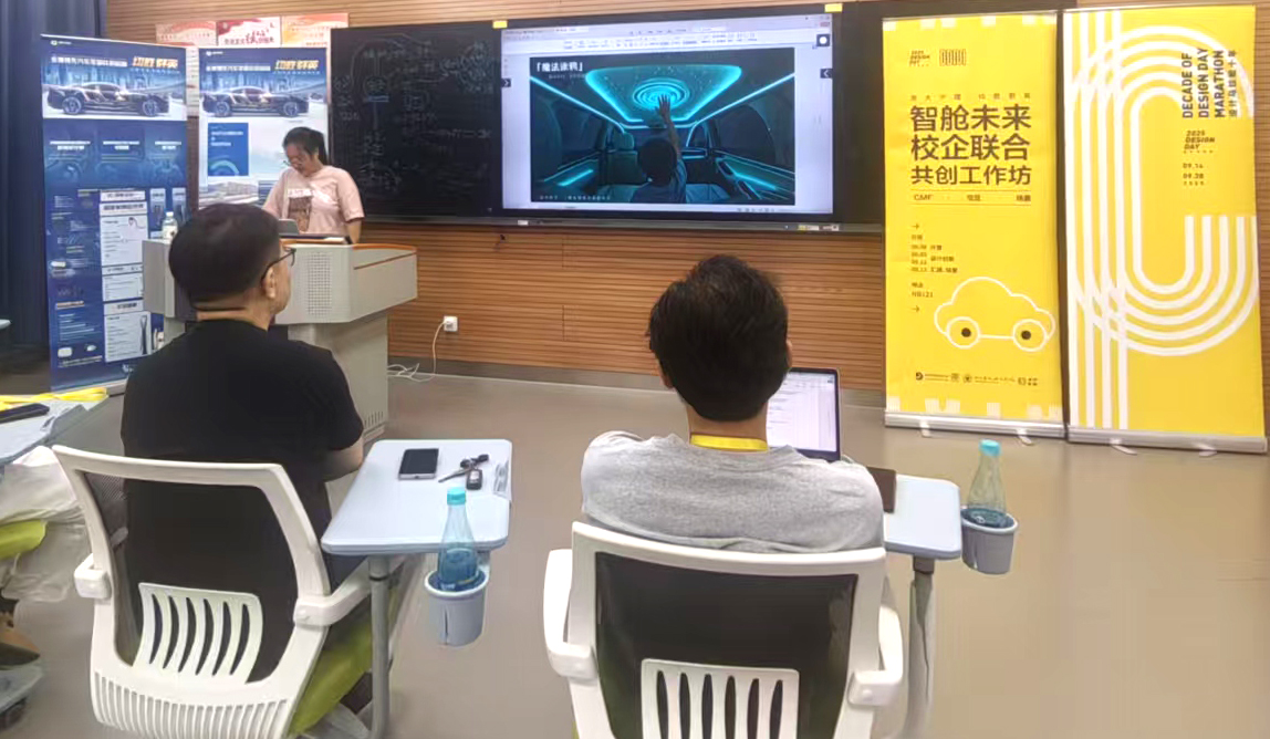 知行合一,创见未来。在顺利完成首轮暑期实践课程后,设计学院智能交互设计专业2023级学生迎来了“智舱未来”校企联合共创工作坊。本次工作坊由设计学院智能交互设计专业牵头,与战略合作企业均胜群英共同开展,形成了跨学科、产学研一体的协同共创平台。工作坊聚焦汽车智能座舱领域三大核心方向:CMF美学创新、智能交互体验升级与场景化用户需求挖掘,通过多元视角的融合碰撞,推动具有产业转化价值的设计成果落地。