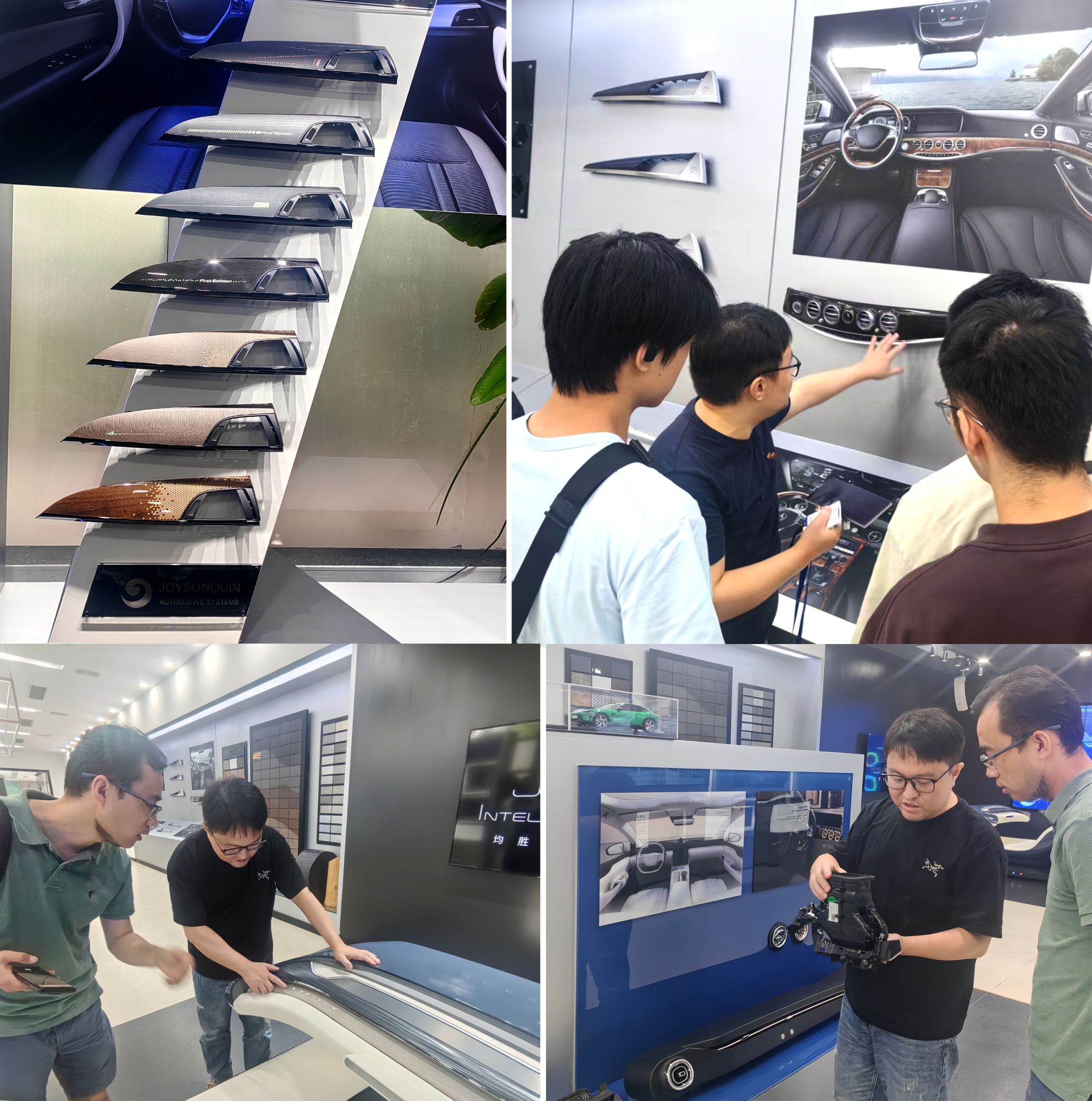 随后,团队前往均胜群英分公司,重点探访了汽车内外饰部件的研发中心。这里陈列着从基础原料到高端饰面的多种材料样本,涵盖可持续环保材质、轻量化复合材料以及智能表面材料等前沿方向。