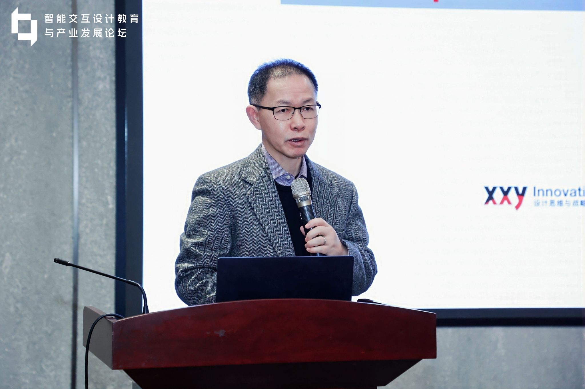 侯文军教授以“AI时代的变革与智能交互设计专业建设”为题,强调智能交互设计的核心理念是从“人适应机器”转向“机器适应人”,提出“智能交互是实现终极通用设计的钥匙”,并建立了智能、设计、交互三大核心培养体系。