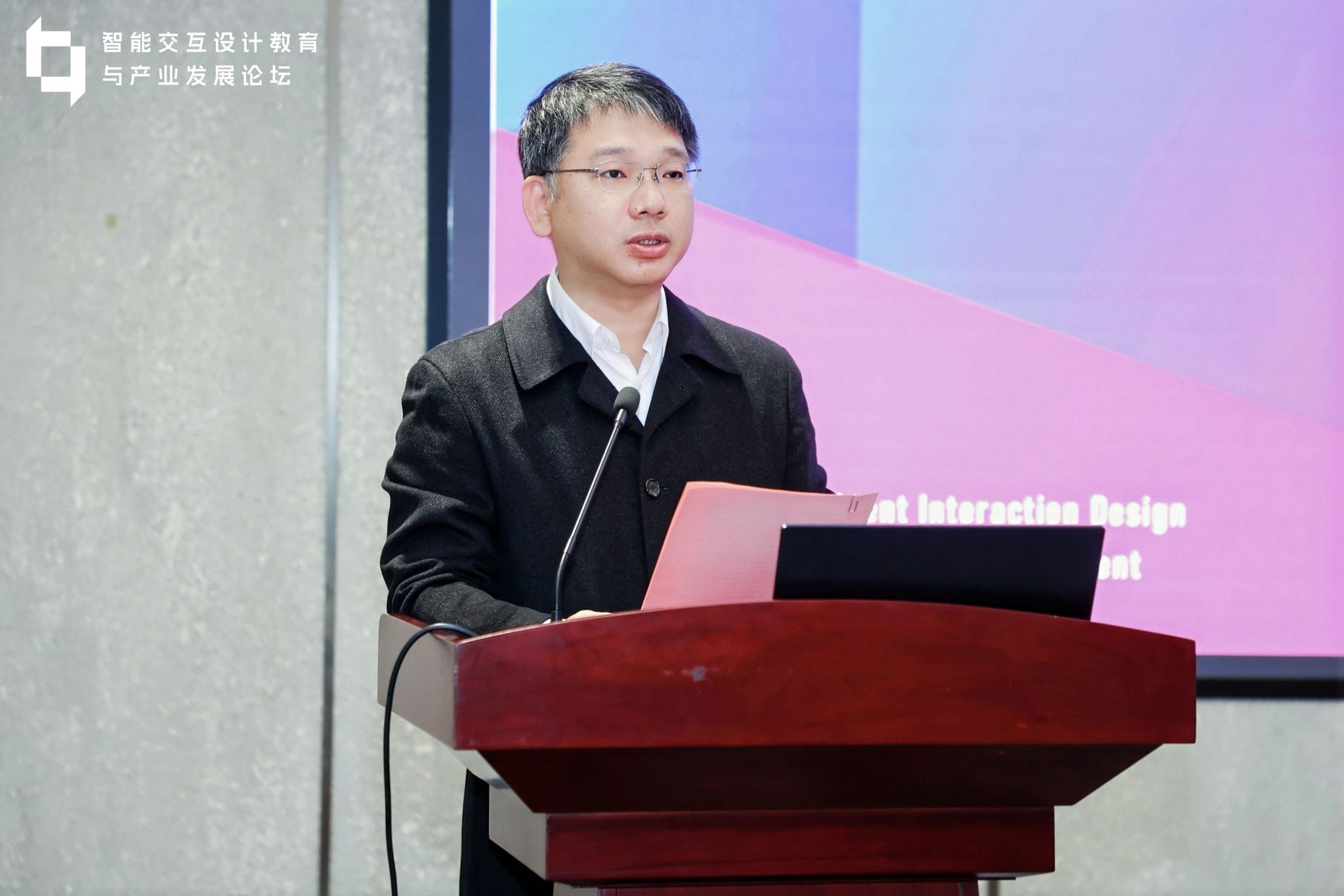 胡长兴在致辞中高度肯定了智能交互设计专业建设成果,希望通过本次论坛,进一步加强与全国高校、科研院所和企事业单位的交流与合作,共同构建智能交互设计教育的前沿对话平台,推动智能交互设计专业高质量发展。