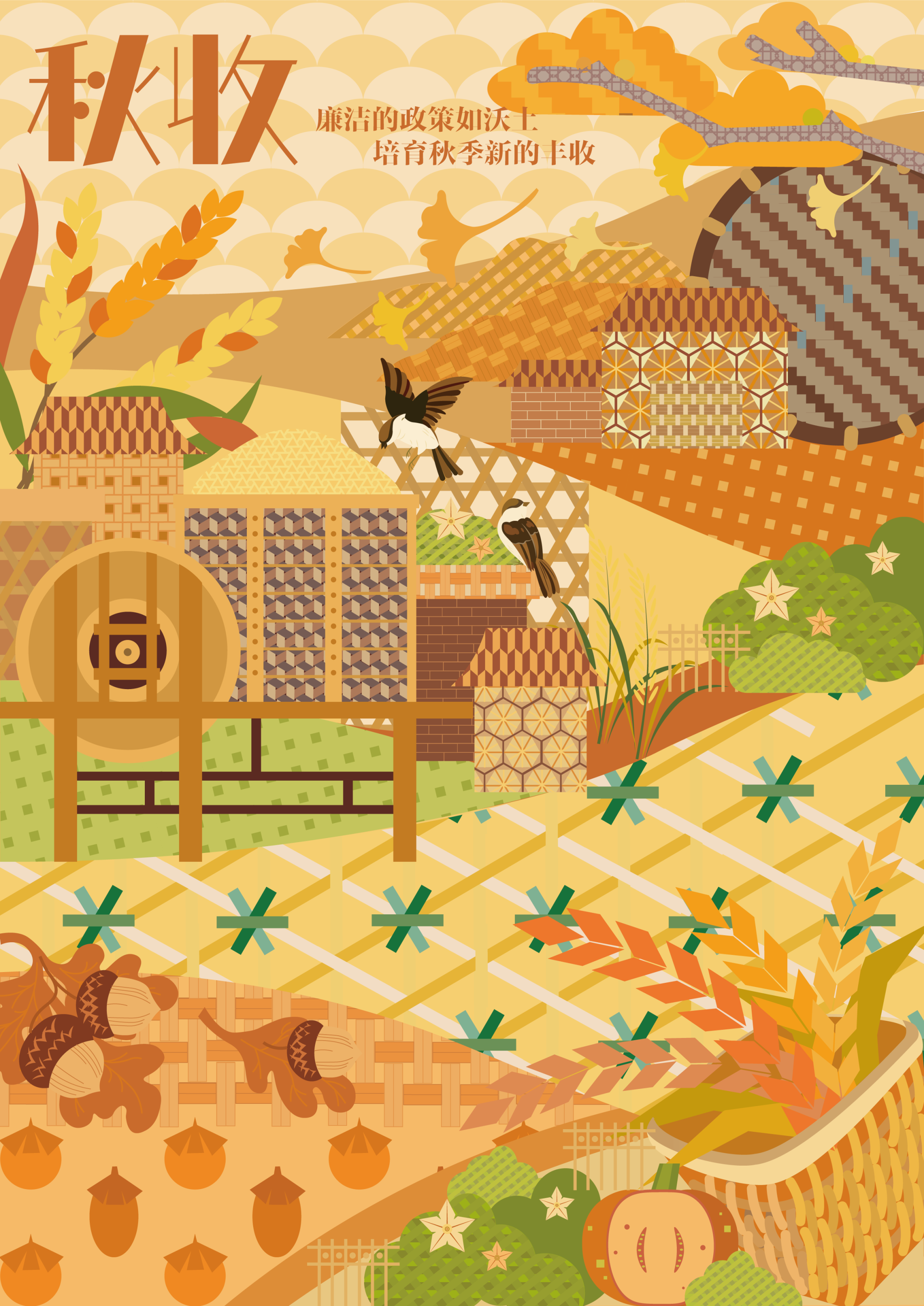 秋阳铺金田野,谷穗如竹谦逊。老宅民宿里竹编灯罩映游客笑脸,清廉环境吸引归乡青年,活化竹编技艺,让乡村走向世界。