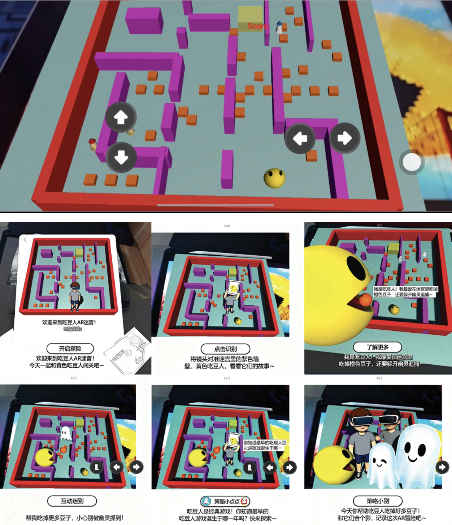利用AR技术,在日常生活中的场景中生成吃豆人的形象,用户可以控制吃豆人在各种场景中躲避和吃豆子,进行游戏。