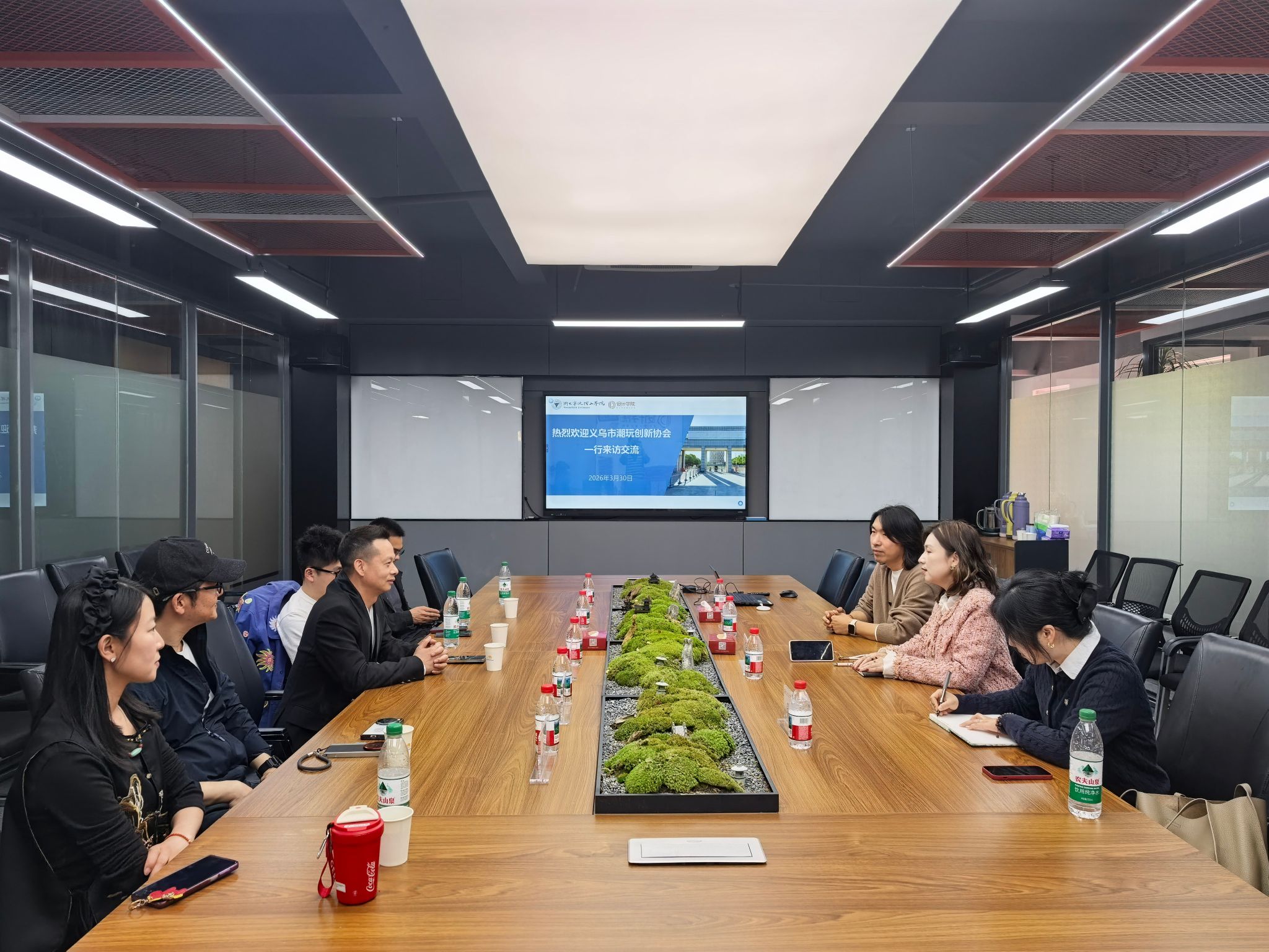 3月30日,义乌市潮玩创新协会会长谷新、常务副会长龚子伟、副会长张家明一行来访设计学院调研交流。设计学院党委书记韩晶晶,相关专业教师代表江彬、张倩茜,以及企业导师许一峰、张尧参与座谈。